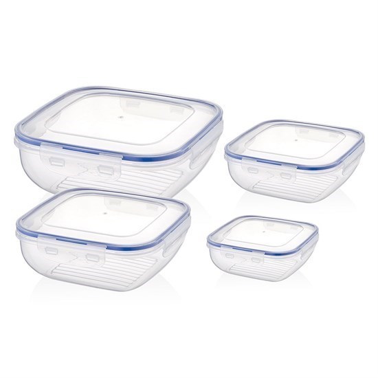 Cook&Lock Kare Sığ Saklama Kabı 4lü Set (350+650+1100+1800 Ml)-12189