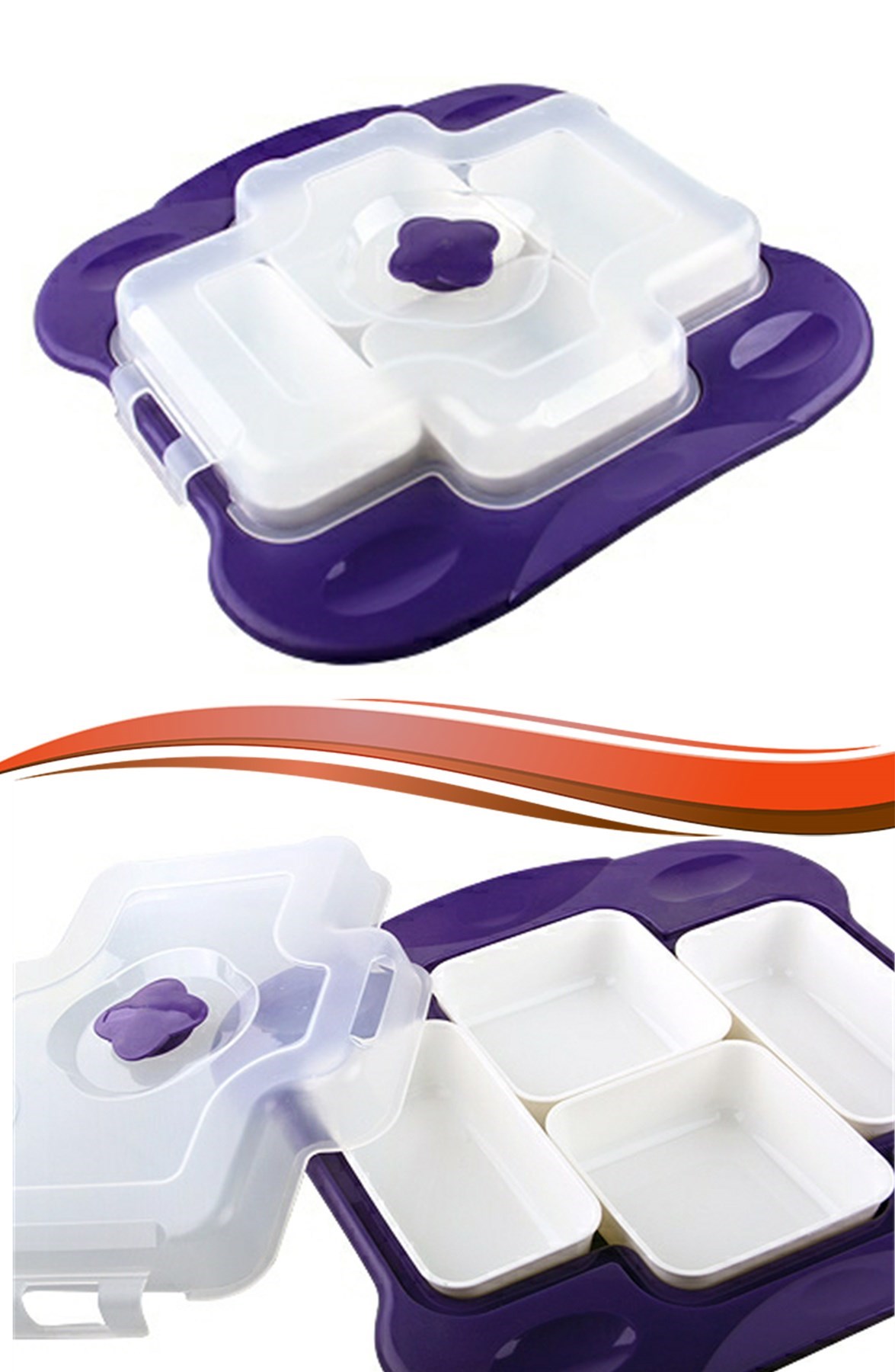 BUFFER® 4 Bölmeli Pratik Kapaklı Tepsili Kahvaltı Tabağı Kasesi Seti