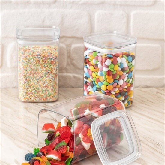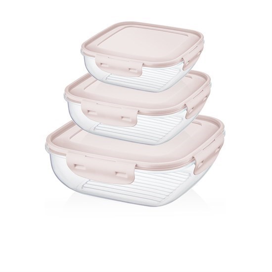 Cook&Lock Renkli Kapak Kare Sığ Saklama Kabı 3lü Set (350+650+1100 Ml)-12211
