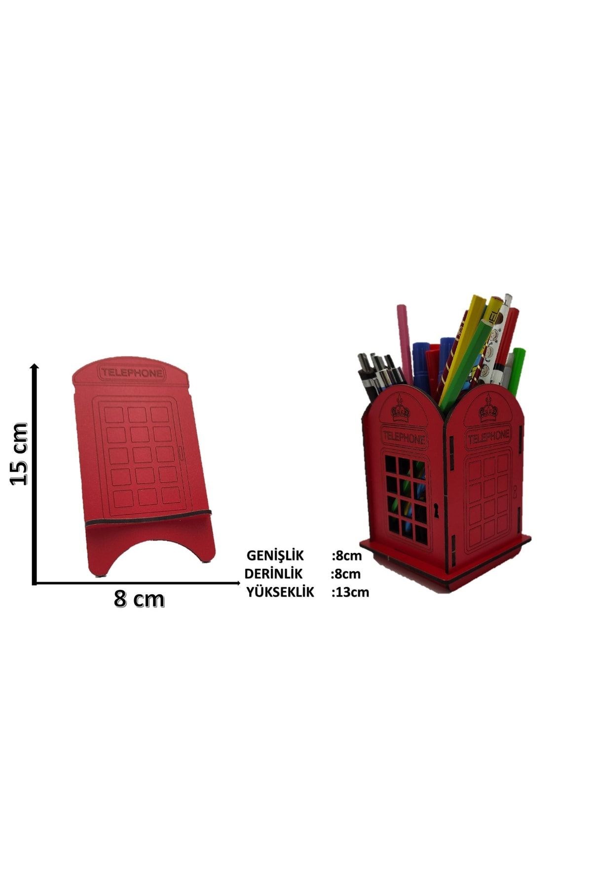 Ahşap Kalemlik Ve Telefon Tutucu Kırmızı