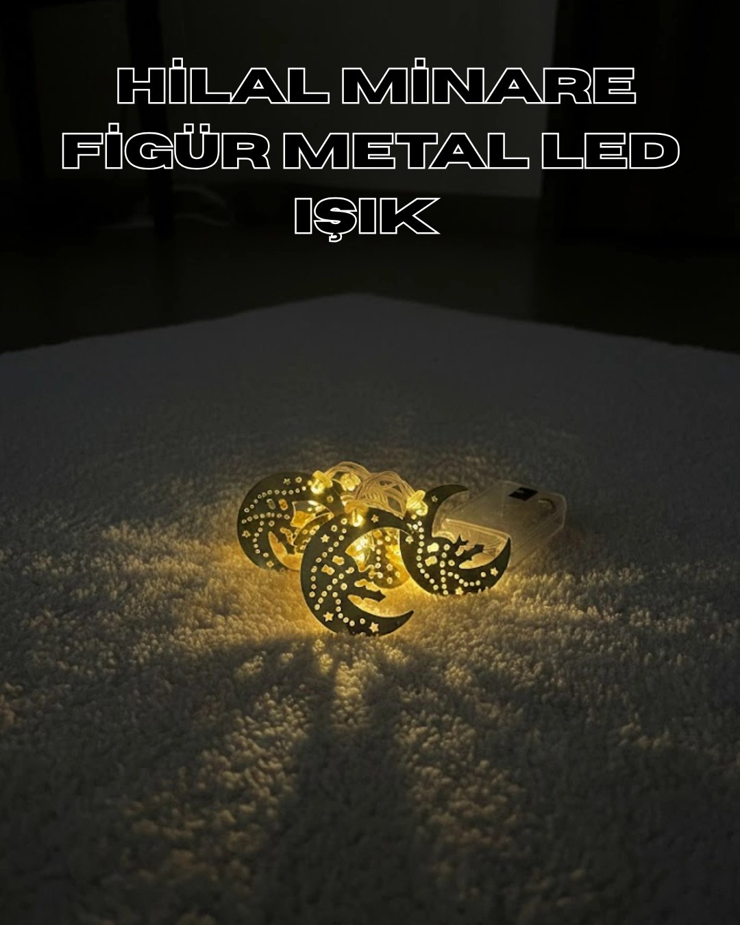 Gold Renk Metal Minareli Hilal Led Işık Pilli Ramazan Süsü