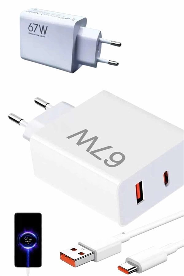 Hızlı Şarj Aleti Adaptörü Kablo Seti 67w Uzun Ömürlü Beyaz