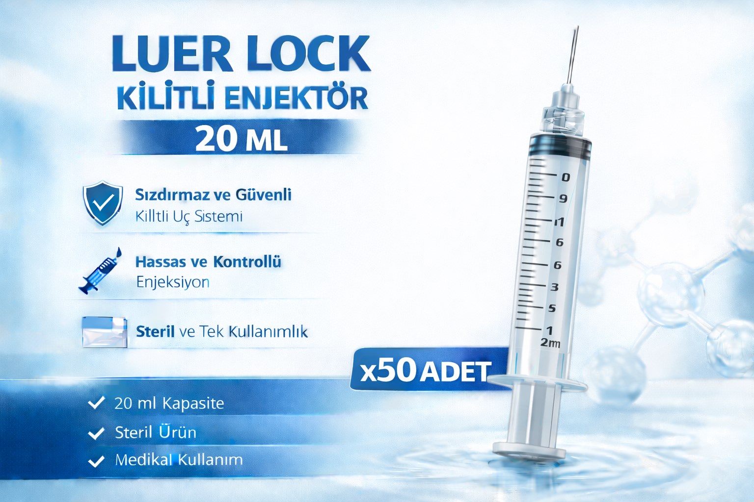 luer lock enjektör 20 ml, kilitli enjektör, 20 ml şırınga, medikal enjektör, steril enjektör, tek kullanımlık enjektör, sızdırmaz şırınga, hastane tipi enjektör, luer lock şırınga, medikal sarf malzemeleri, enjeksiyon şırıngası, güvenli enjektör, 20 ml luer lock enjektör, kilitli şırınga 20cc, steril enjektör, 25li paket enjektör, 50li 75li 100lü şırınga
