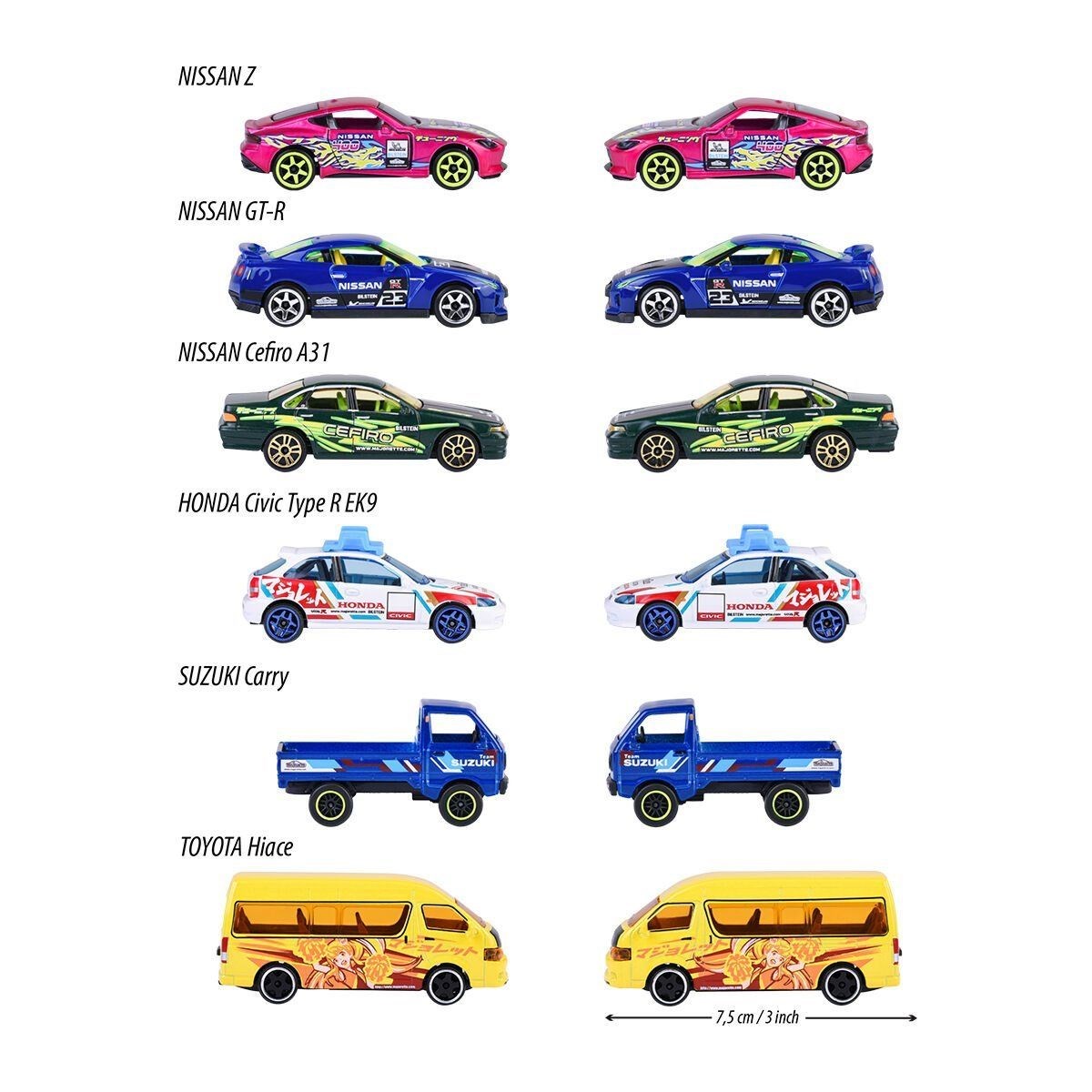 Tokyo stili – Çıkarılabilir ayar parçalarıyla dikkat çeken bu 6 Majorette model araç, Japon pop kültürünün en önemli simgesidir.