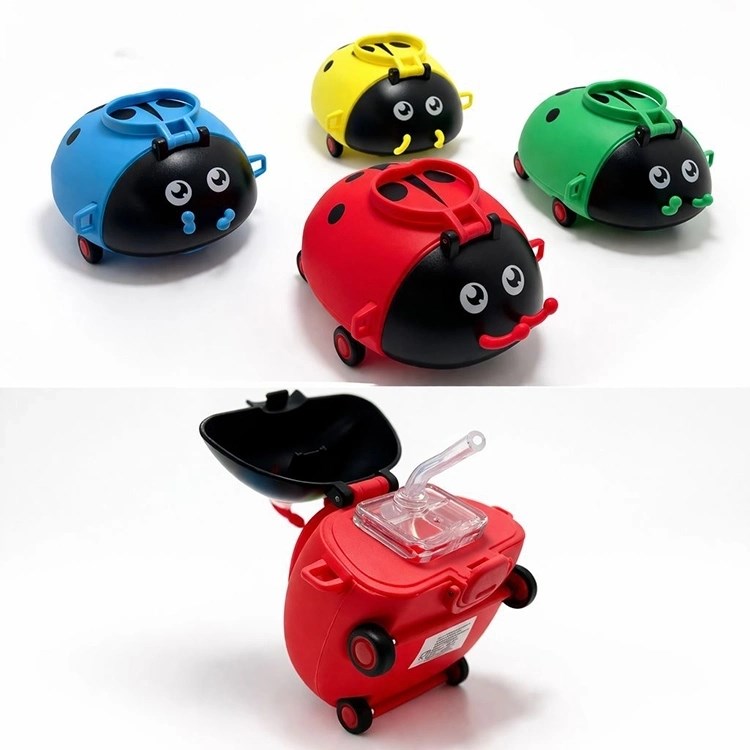 Uğur Böceği Tasarımlı Tekerlekli Çocuk Su Matarası Pipetli Ve Askılı Okul Suluğu Alk4656
