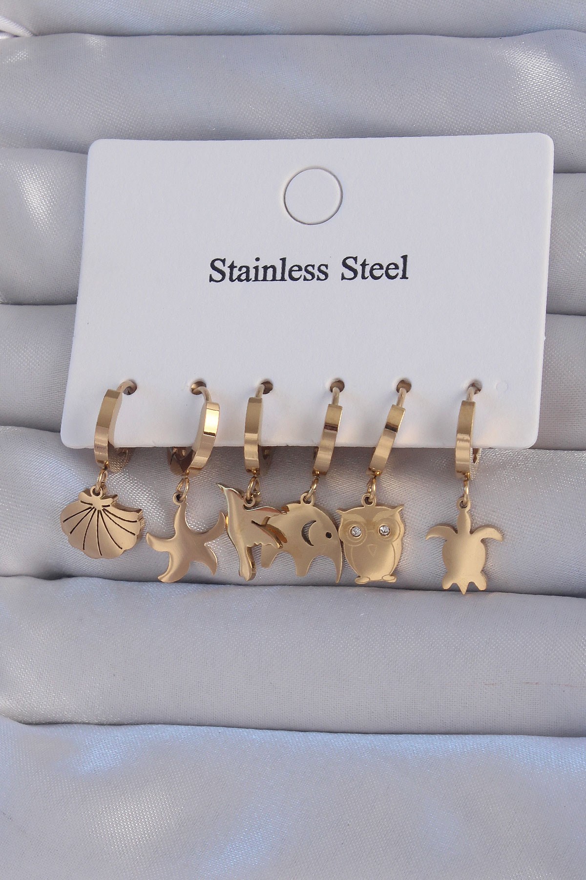 Pirinç Gold Renk Bordo Yonca Model Kadın Küpe