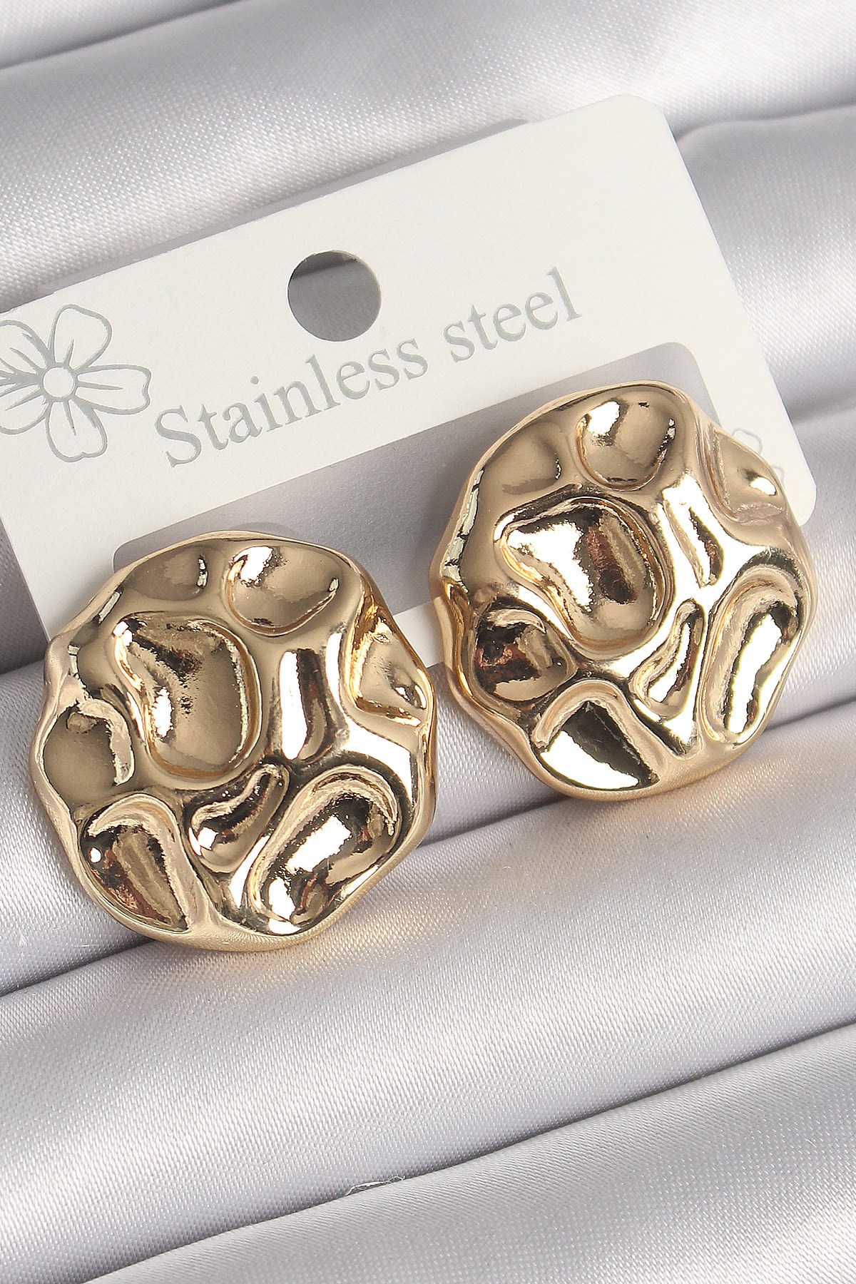 Pirinç Gold Renk İşlemeli Daire Plaka Model Kadın Küpe
