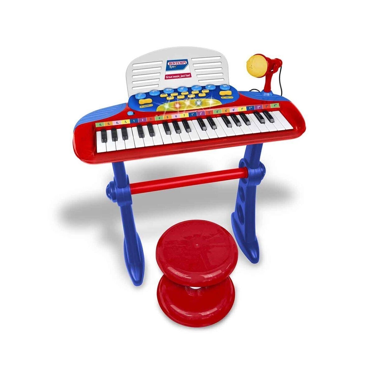 Müzik yapmak hiç bu kadar eğlenceli olmamıştı! Minik müzisyenler için tasarlanan bu harika mikrofonlu, tabureli, ayaklı ve 37 tuşlu org seti ile kendi sahneni kurabilir sonrasında muhteşem bir konser verebilirsin. Eğlence dolu müzikal maceranda seni 11 adet demo şarkı karşılıyor. İstersen bu şarkıları dinleyebilir, istersen 5 farklı ritim ve 5 ses ile kendi tarzını oluşturabilirsin.