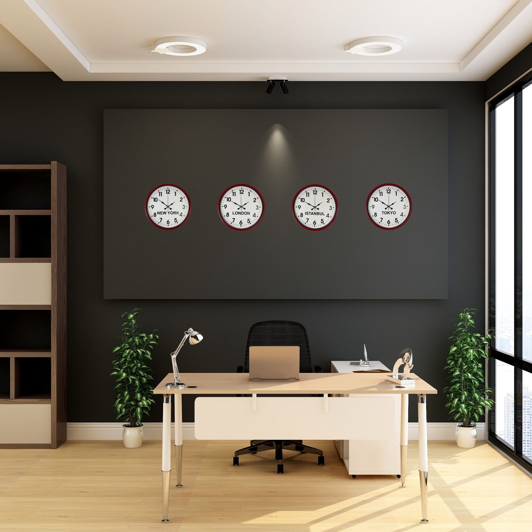Dikkat çekici tasarımı ile öne çıkan Platin Saat 36 cm 4’lü dünya saatleri seti, kırmızı kasa rengi ile bulunduğu ortama enerjik, modern ve iddialı bir görünüm kazandırır. New York, London, Istanbul ve Tokyo saatlerini aynı anda takip etmenizi sağlayan bu özel set; oteller, resepsiyon alanları, ofisler ve uluslararası çalışan işletmeler için hem dekoratif hem de fonksiyonel bir çözümdür.
