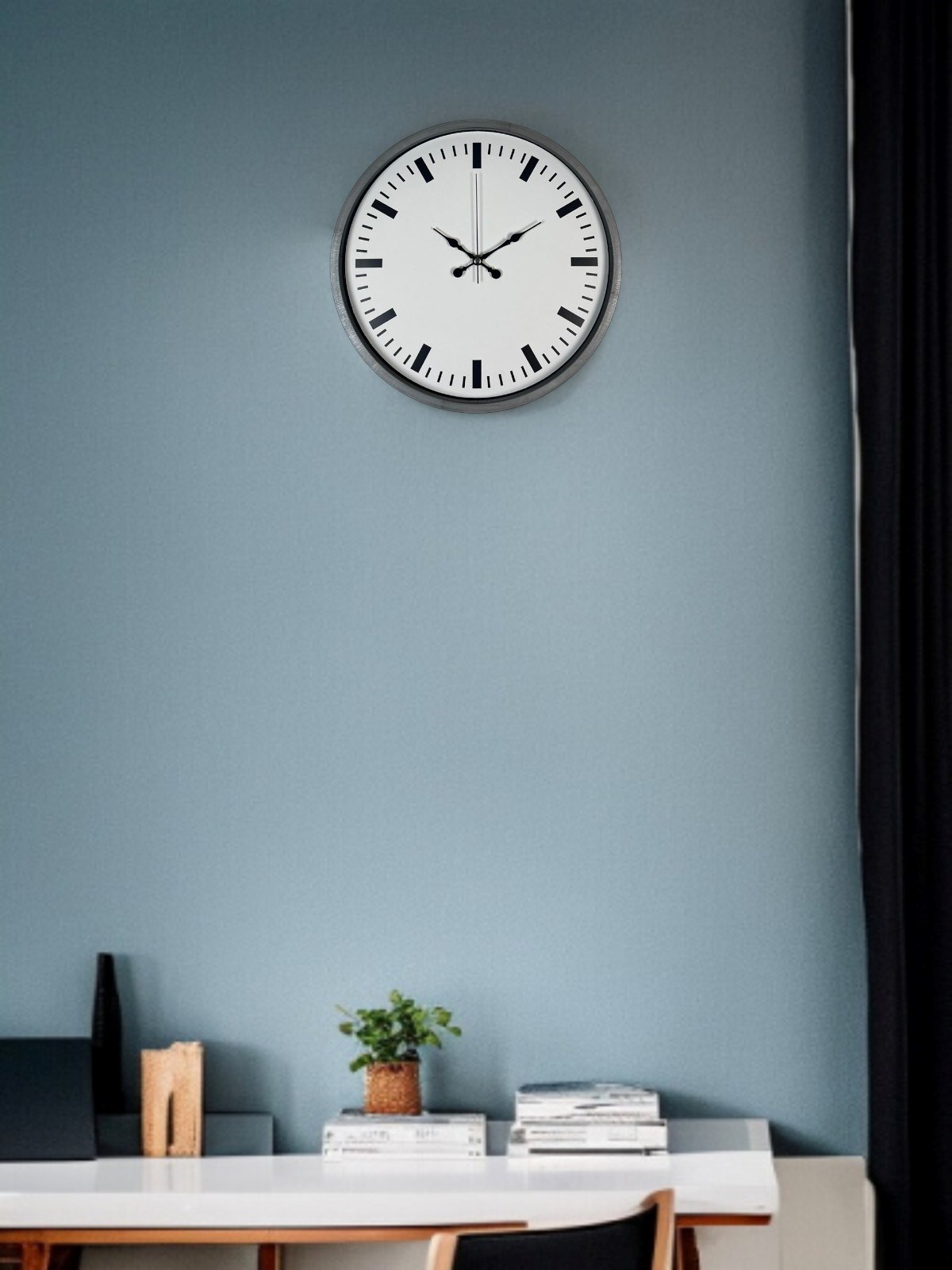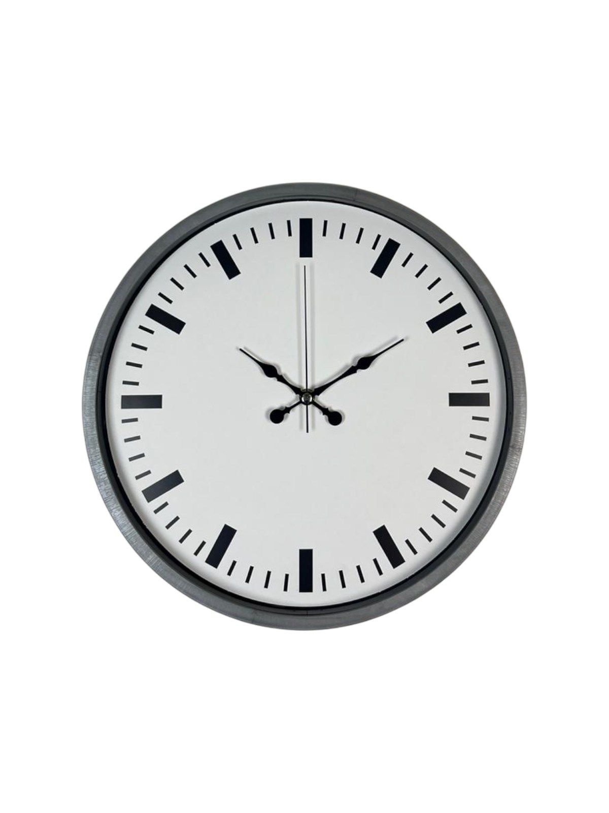 Beyaz kadranı, siyah indeksleri ve gri çerçevesiyle tasarlanan bu 36 cm duvar saati; sade, modern ve zamansız bir görünüm sunar. Minimal kadran yapısı sayesinde gözü yormaz, her açıdan net okunabilirlik sağlar.