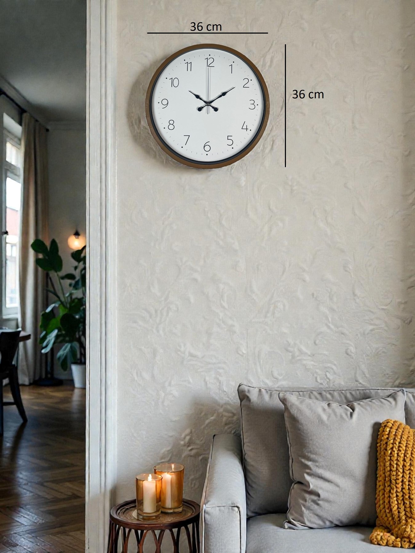 36 x 36 cm eskitme kahverengi duvar saati, sade ve modern tasarımıyla her yaşam alanında kullanılabilecek şık ve fonksiyonel bir dekor ürünüdür. Doğal tonlarda tasarlanmış eskitme kahverengi çerçevesi, beyaz zeminli geniş kadranı ve net okunaklı rakamlarıyla hem klasik hem de modern dekorasyonlara uyum sağlar.