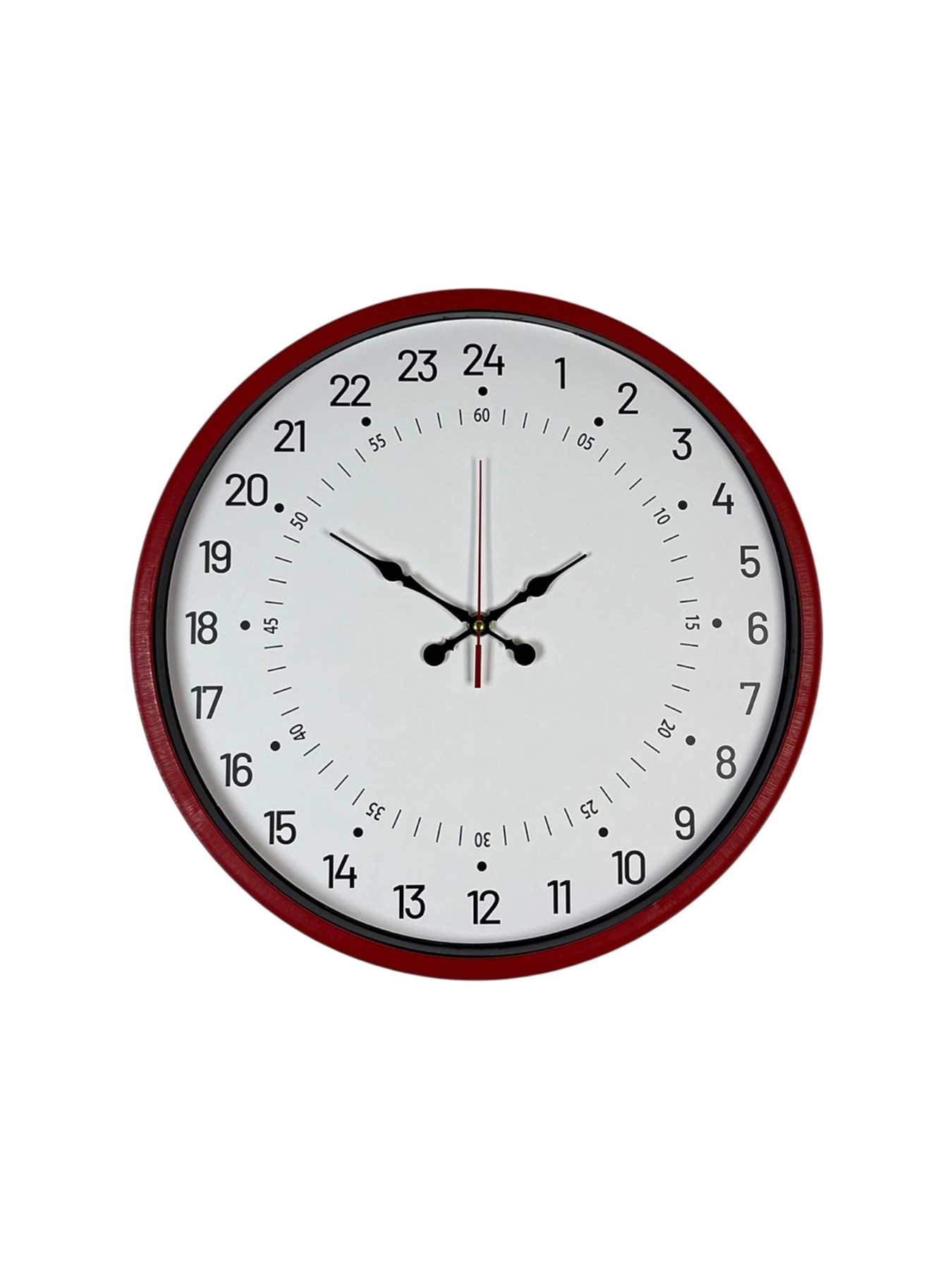 Canlı kırmızı çerçevesi ve sade beyaz kadranı ile hem modern hem de dikkat çekici bir görünüm sunan bu 36 cm duvar saati, bulunduğu ortamda hemen fark edilir. 24 saatlik gösterim, özellikle farklı tasarımlardan hoşlananlar, vardiyalı çalışanlar, ofisler ve eğitim alanları için ideal bir kullanım sağlar. Standart saatlerden ayrılan bu yapı, ürünü hem fonksiyonel hem de özgün kılar.