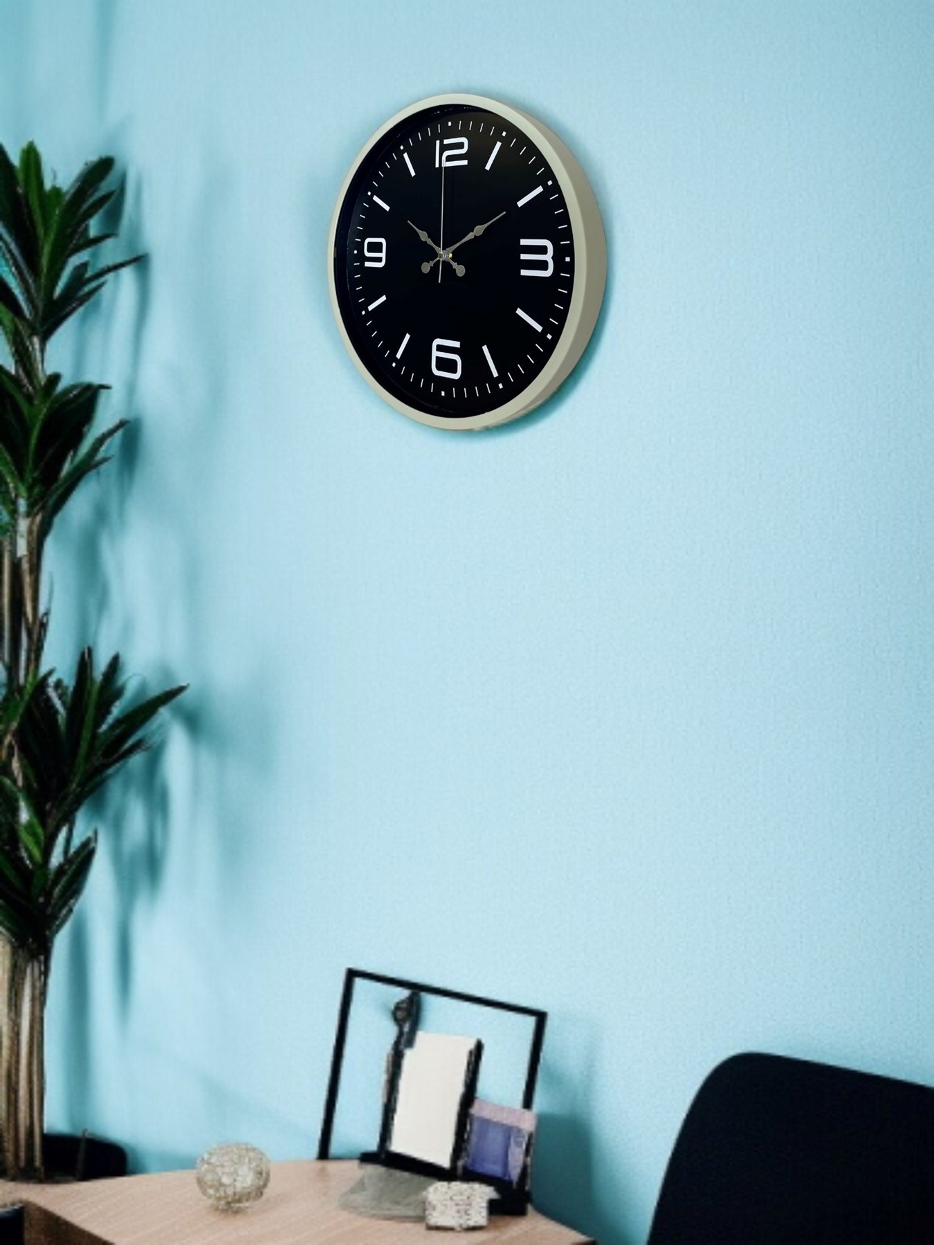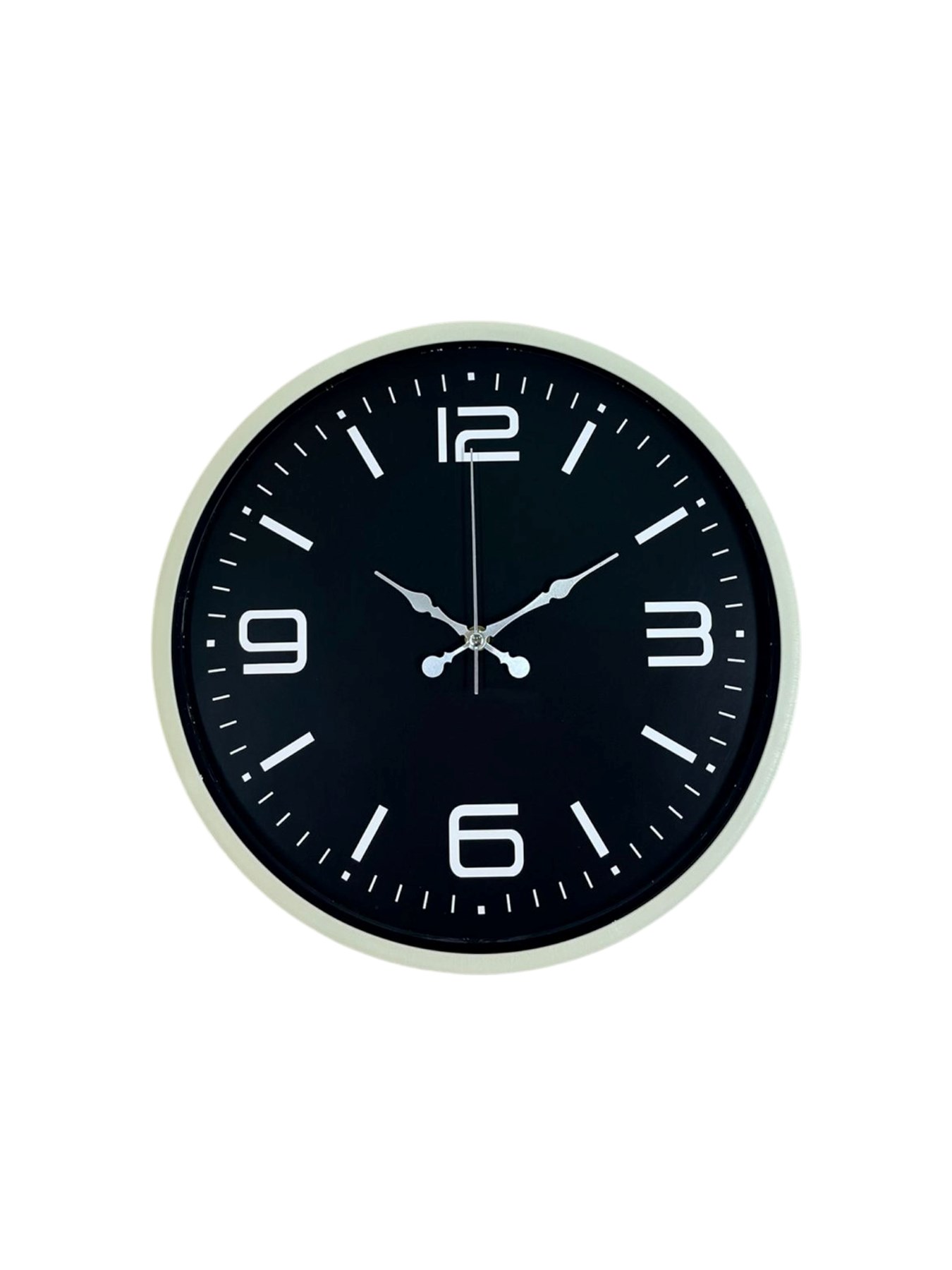 Krem renkli çerçevesi ve siyah zemin üzerindeki beyaz rakamlarıyla tasarlanan bu 36 cm duvar saati, yüksek kontrastlı kadranı sayesinde zamanı tek bakışta kolayca okumayı sağlar. Sade ve modern tasarımı, hem ev hem de ofis dekorasyonlarında uyumlu ve düzenli bir görünüm sunar. Minimal çizgileri sayesinde klasik ve çağdaş mekânlara rahatlıkla eşlik eder.