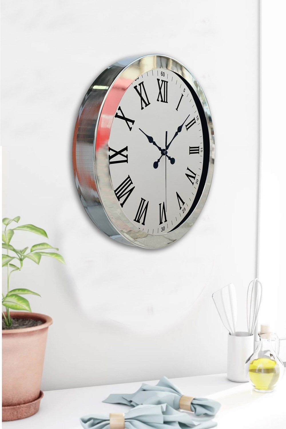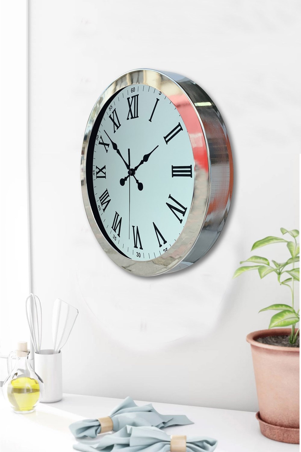 Şık ve modern tasarımıyla dikkat çeken 36 cm krom kaplamalı duvar saatimiz, sessiz akar saniye mekanizmasıyla konforlu bir kullanım sunar. Gerçek cam koruma paneli sayesinde uzun ömürlü ve dayanıklıdır. Estetik görünümüyle hem ev hem de iş yerleri için ideal bir dekoratif üründür.