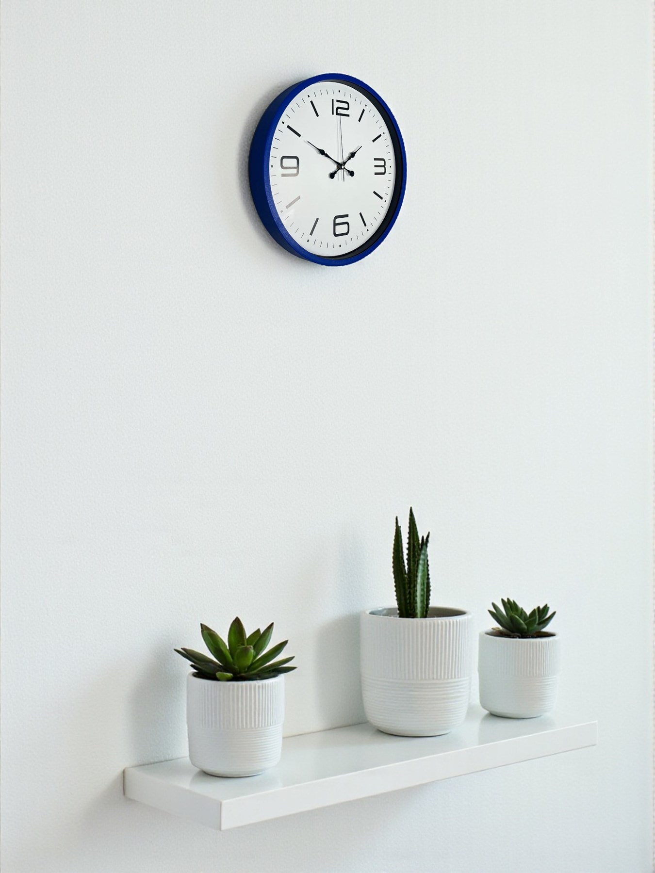 Lacivert çerçevesi ve beyaz zeminli kadranıyla tasarlanan bu 36 cm duvar saati, sade şıklığı modern çizgilerle buluşturur. Net ve büyük rakamları sayesinde zamanı uzaktan dahi kolayca okumaya imkân tanır. Günlük kullanım için pratik, dekoratif açıdan ise her ortama uyum sağlayan zamansız bir tasarıma sahiptir.
