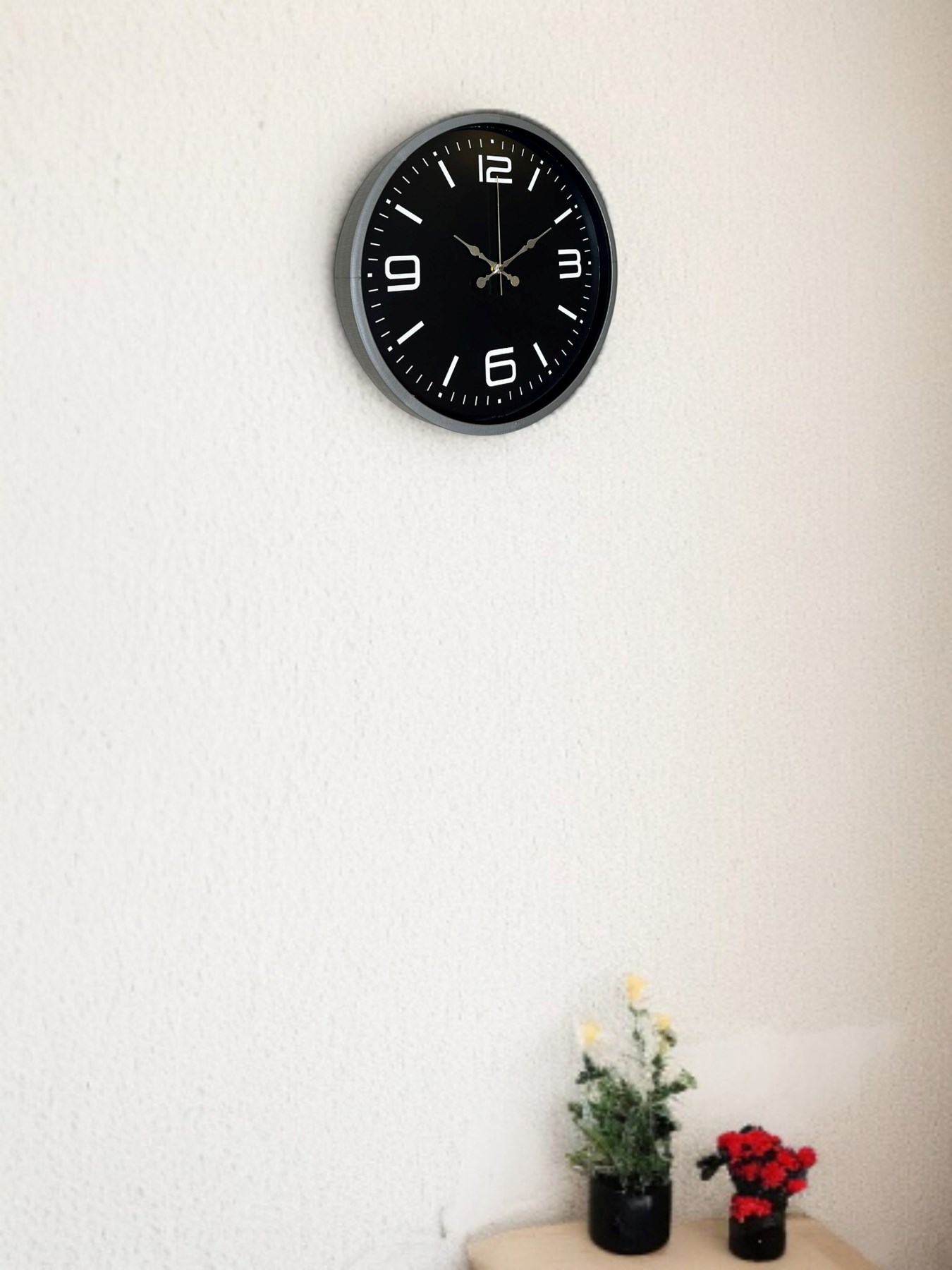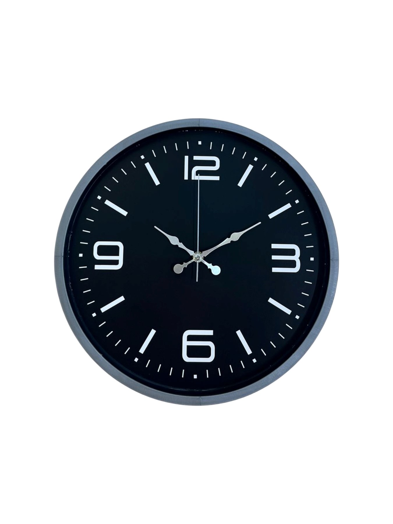 Siyah kadranı, kontrast oluşturan beyaz rakamları ve gri çerçevesiyle tasarlanan bu 36 cm duvar saati; modern, sade ve güçlü bir duruş sunar. Net rakam yapısı sayesinde uzaktan bile kolayca okunur ve günlük kullanımda pratiklik sağlar.