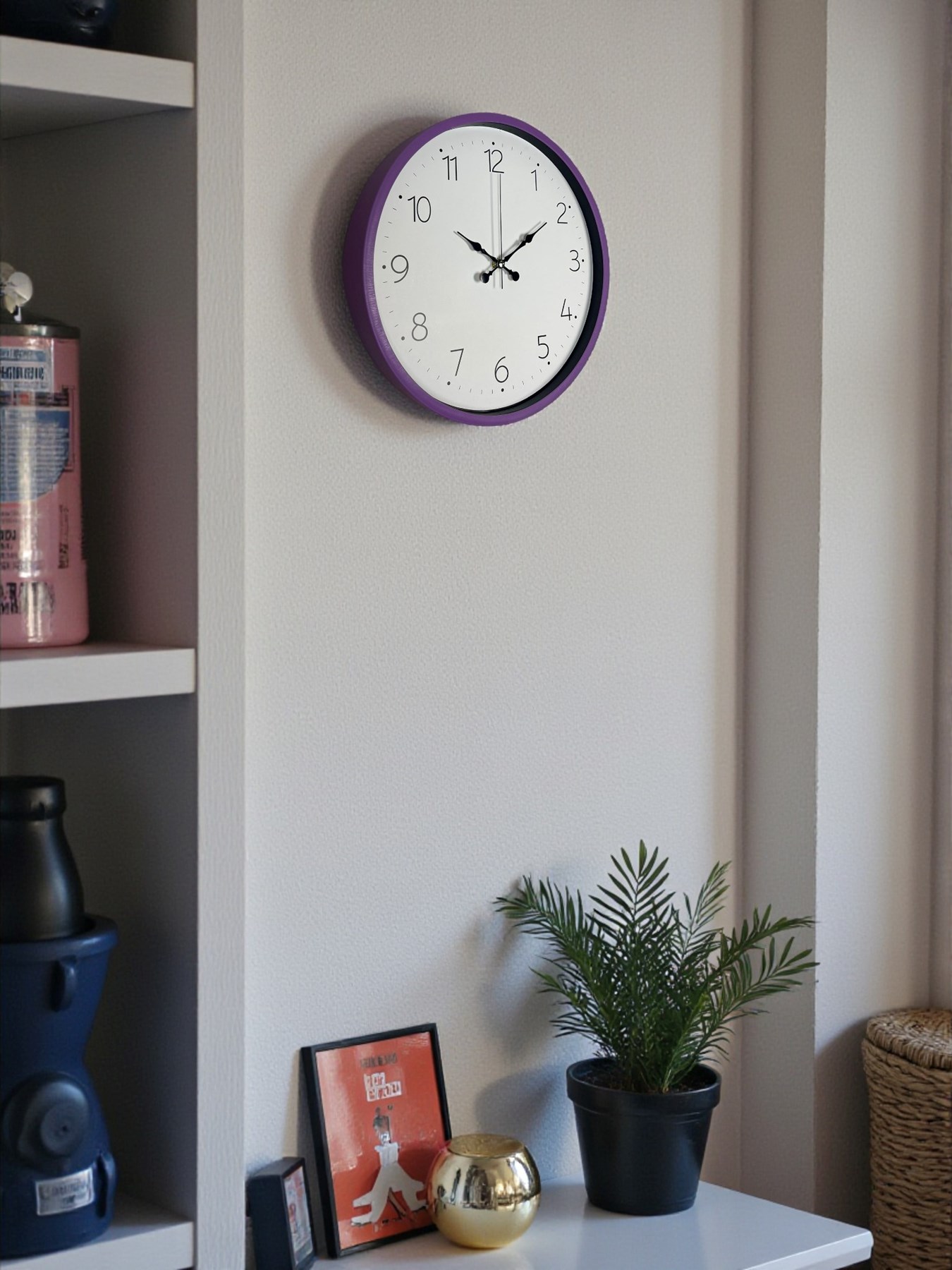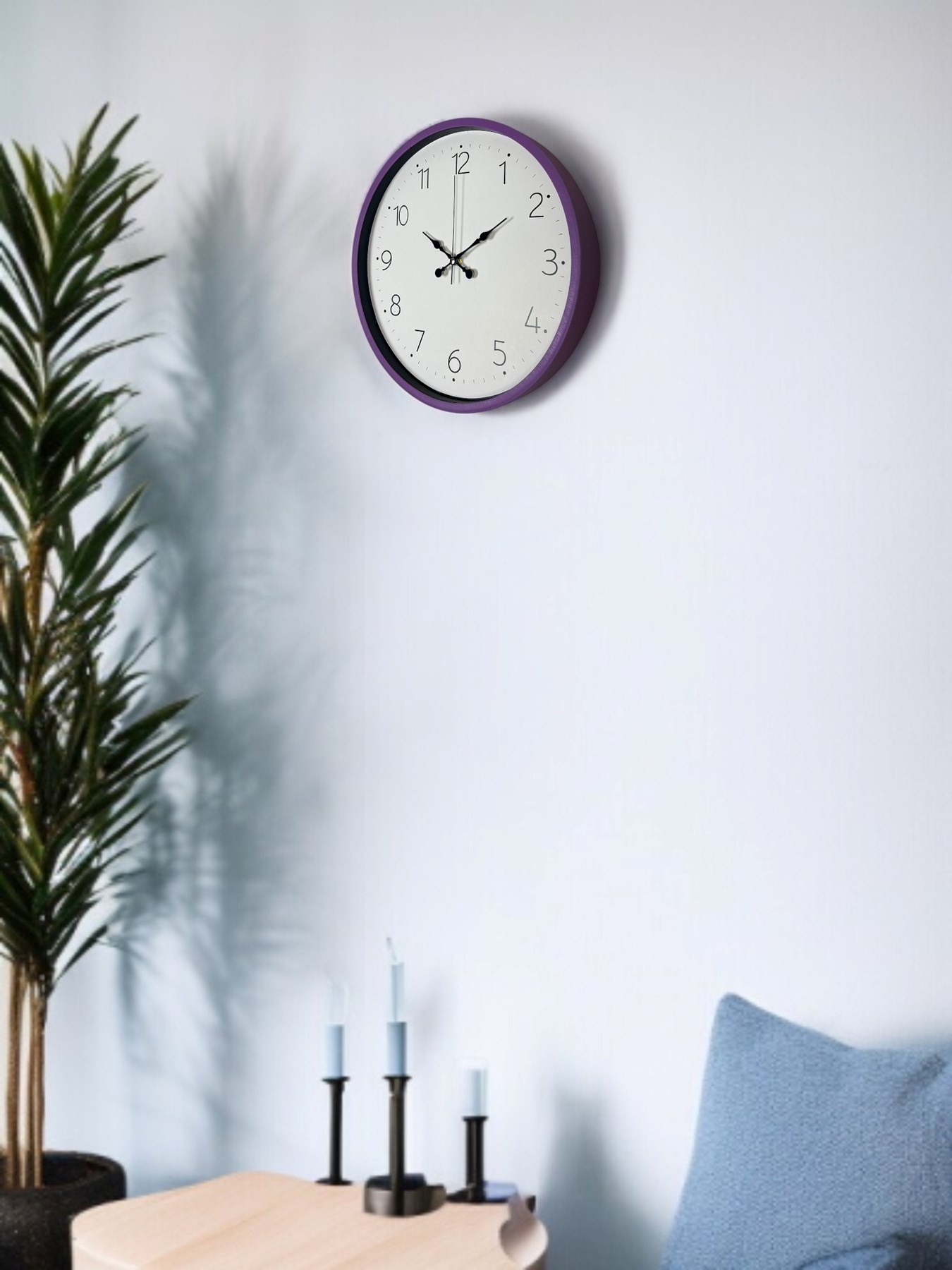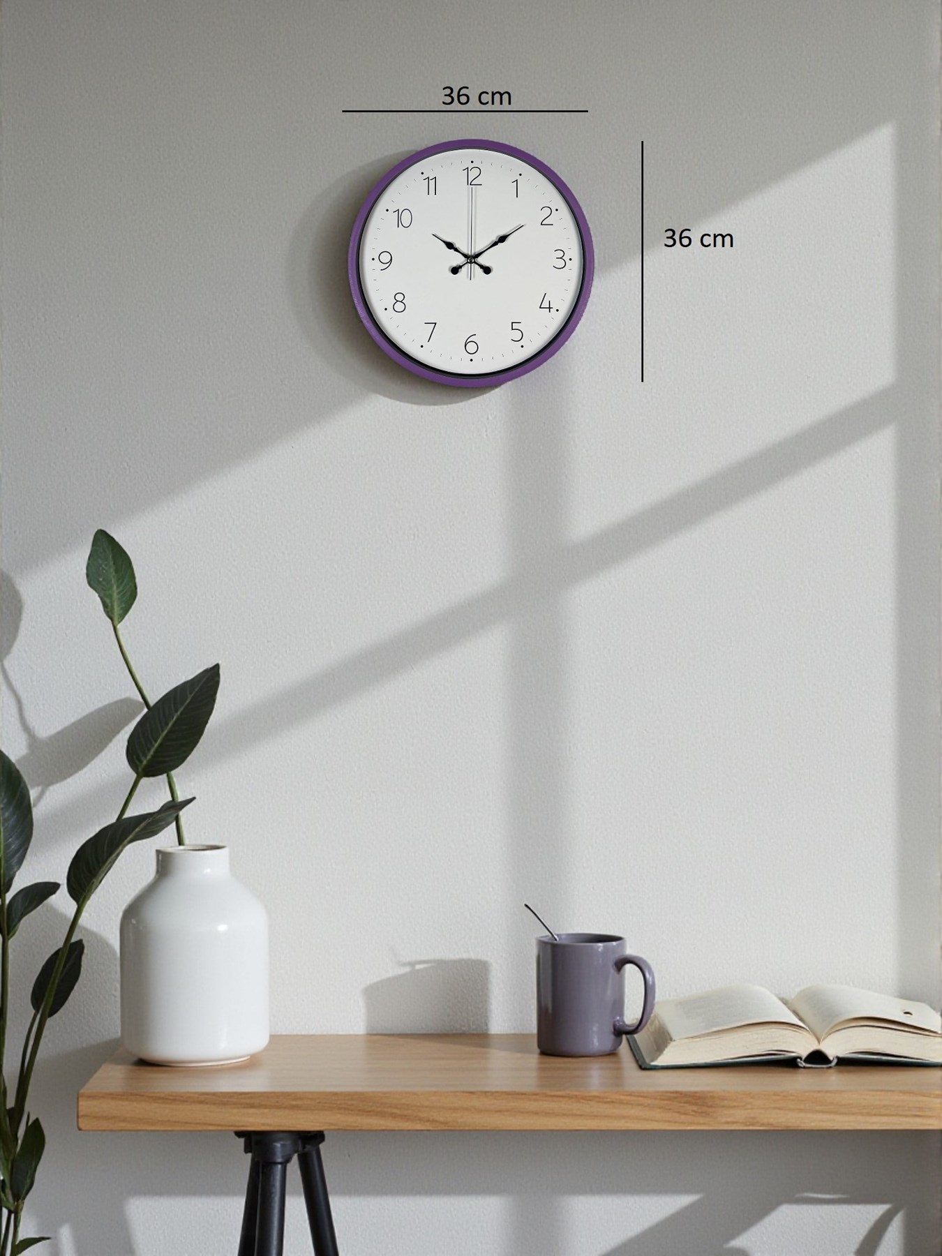 Modern çizgileri ve dikkat çekici mor çerçevesiyle bu 36 cm duvar saati, yaşam alanlarına hem enerji hem de estetik katan şık bir tasarımdır. Mor rengin zarif ve modern etkisi; salon, mutfak, ofis, genç odası, çalışma alanları veya dekoratif dokunuş isteyen tüm mekanlarda canlı bir atmosfer oluşturur. Büyük siyah rakamları ve sade beyaz zeminli kadranı sayesinde saat uzaktan dahi kolayca okunabilir.