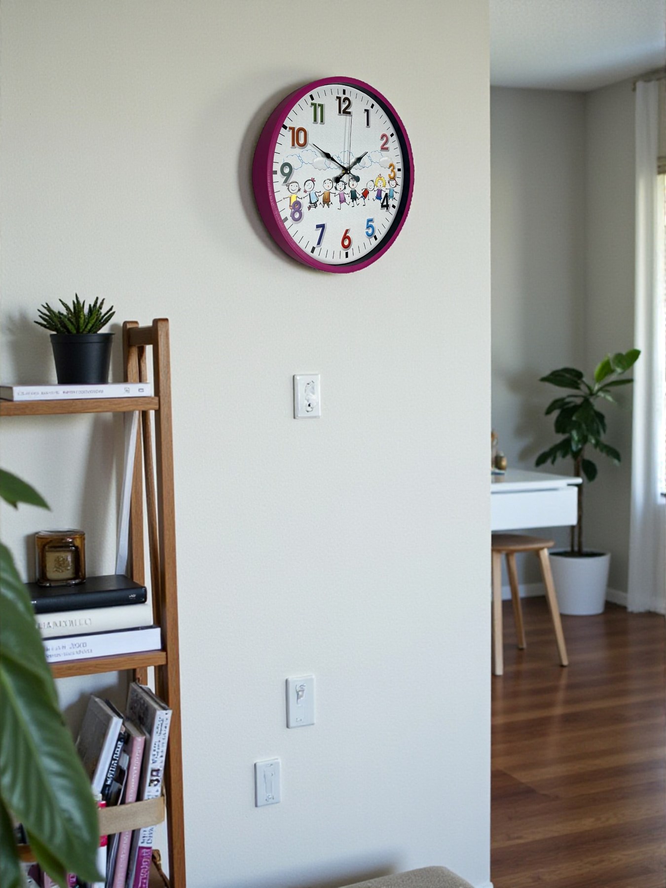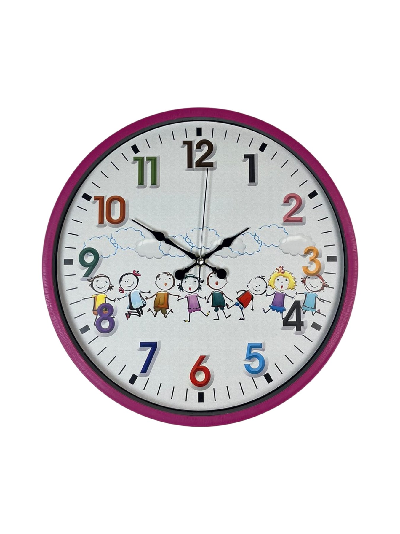 Canlı pembe çerçevesi, renkli rakamları ve sevimli çocuk figürleriyle tasarlanan bu 36 cm çocuk odası duvar saati, çocukların odasına neşe ve sıcak bir atmosfer kazandırır. Eğlenceli tasarımı sayesinde çocukların saat kavramını öğrenmesini desteklerken, odanın dekorasyonuna da enerjik bir dokunuş ekler.