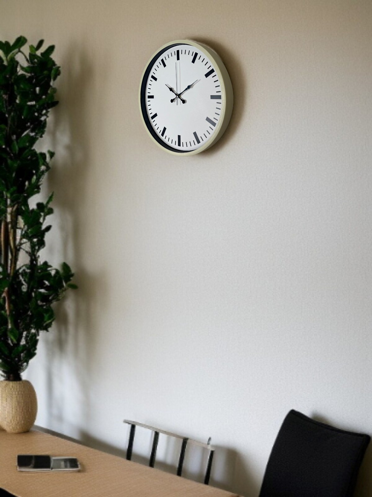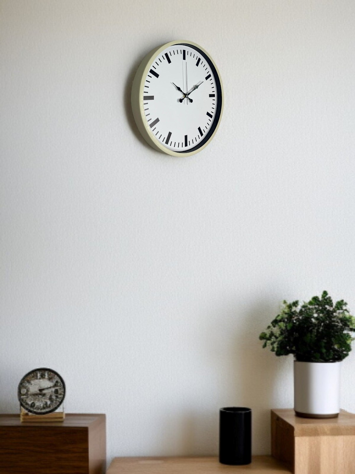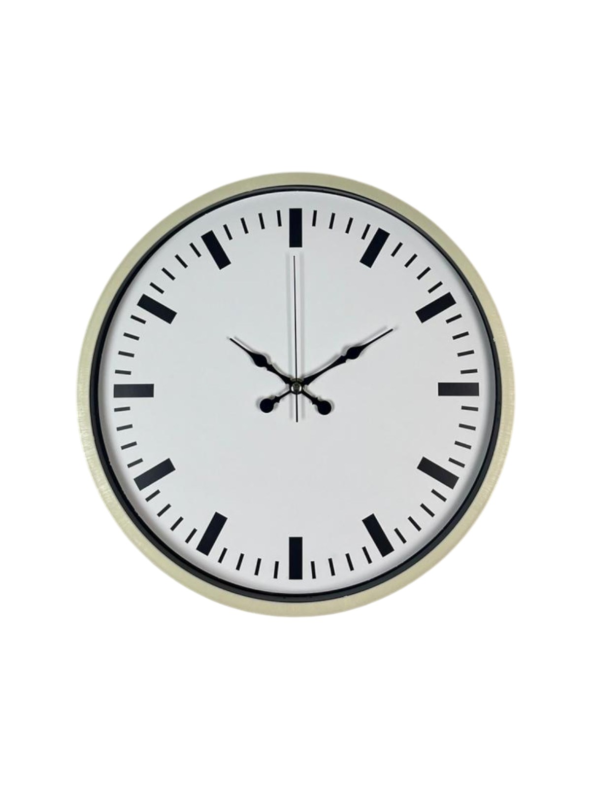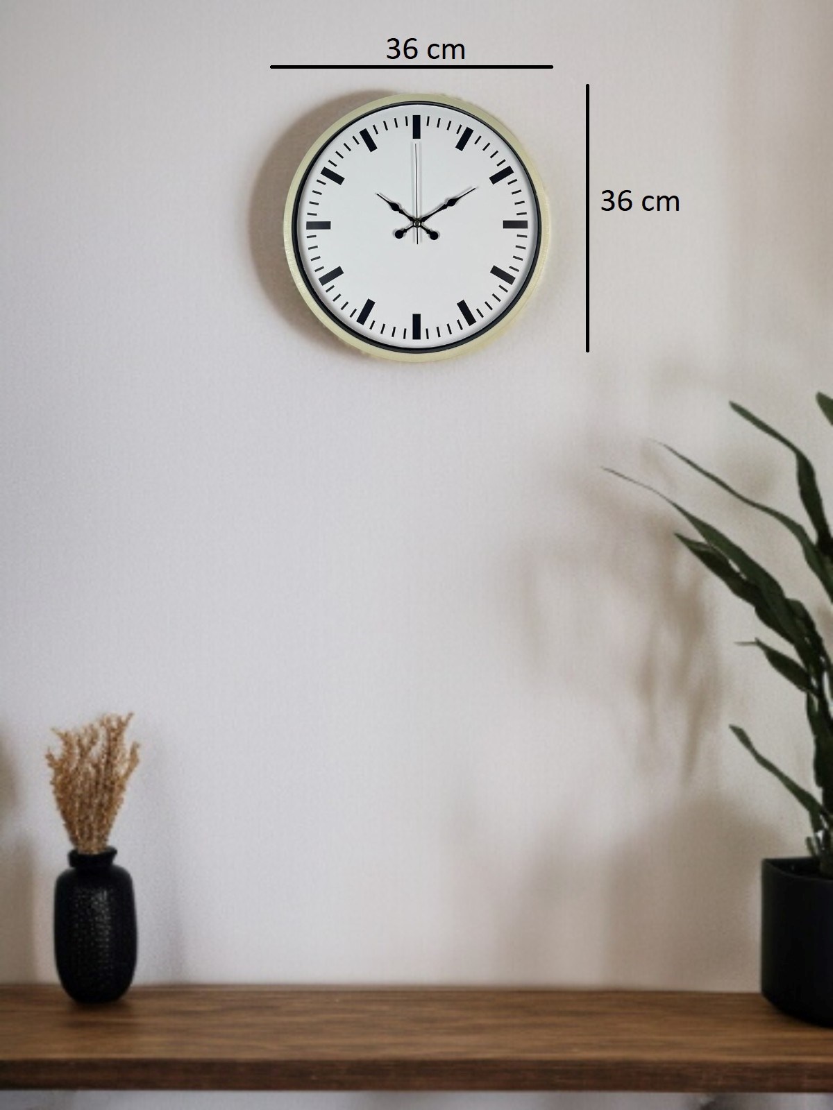 Krem renkli çerçevesi ve beyaz zemin üzerine yerleştirilmiş siyah indeks göstergeleriyle tasarlanan bu 36 cm duvar saati; sade ve modern dekorasyon anlayışını benimseyenler için ideal bir seçimdir. Net çizgileri ve dengeli kadran yapısı sayesinde zamanı uzaktan dahi rahatlıkla okumayı sağlar. Minimal tasarımı sayesinde salon, mutfak, ofis ve çalışma alanlarında kolayca uyum sağlar.