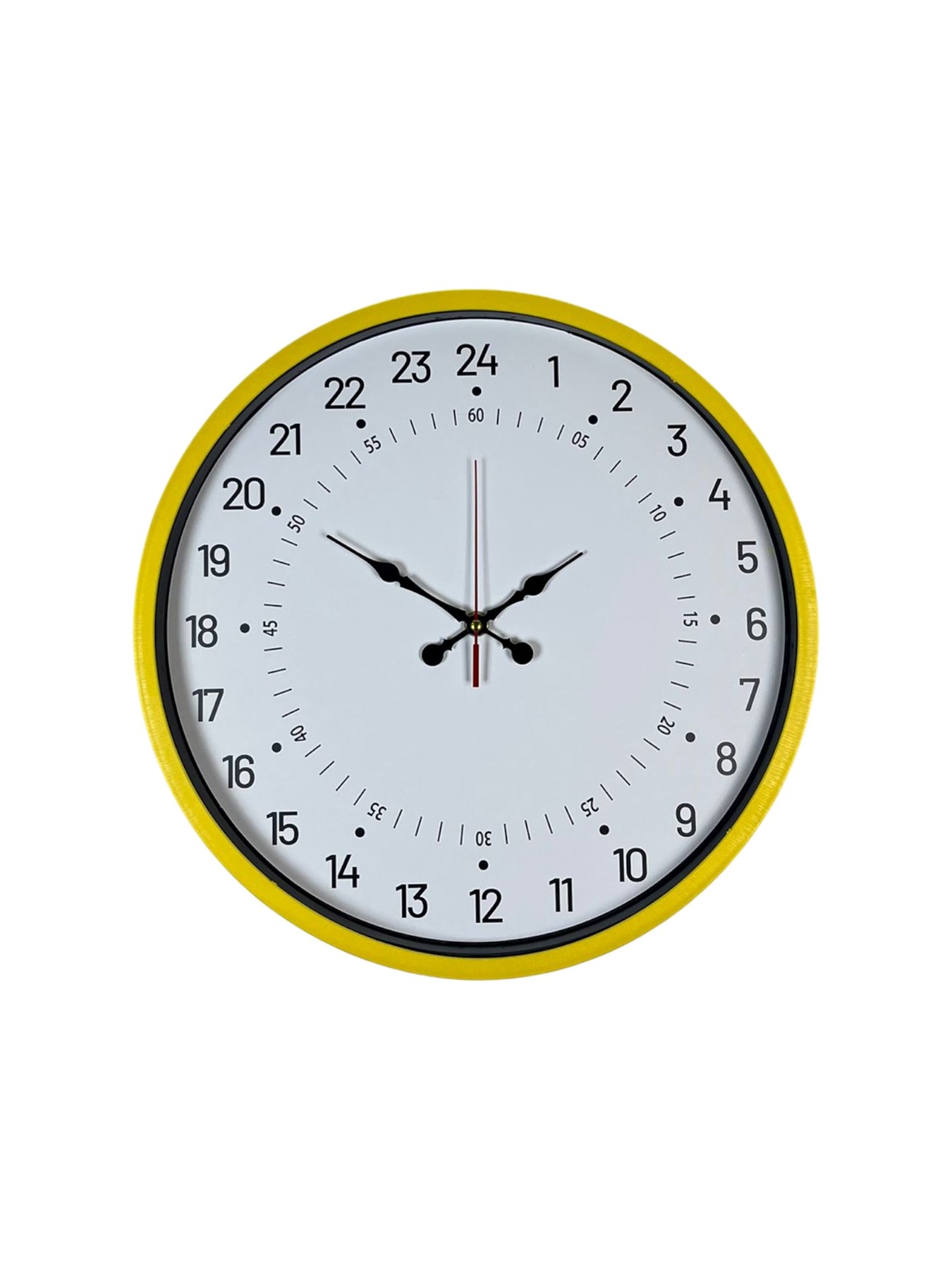 Canlı sarı çerçevesi ile enerjik bir duruş sergilerken, sade beyaz kadranı ve net siyah rakamları sayesinde yüksek okunabilirlik sunar. İç ve dış halkada yer alan 24 saatlik göstergeler; eğitim amaçlı kullanım, vardiyalı çalışma düzeni ve zaman takibini kolaylaştırmak isteyenler için büyük avantaj sağlar.