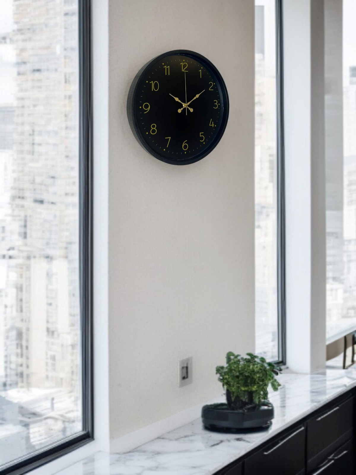Minimal tasarımı ve asil siyah rengiyle öne çıkan bu 36 cm duvar saati, modern ve klasik dekorasyonlara kusursuz şekilde uyum sağlar. Gold tonlu rakamları ve zarif akrep-yelkovan tasarımı sayesinde saat net bir şekilde okunur ve bulunduğu ortama sofistike bir hava katar.