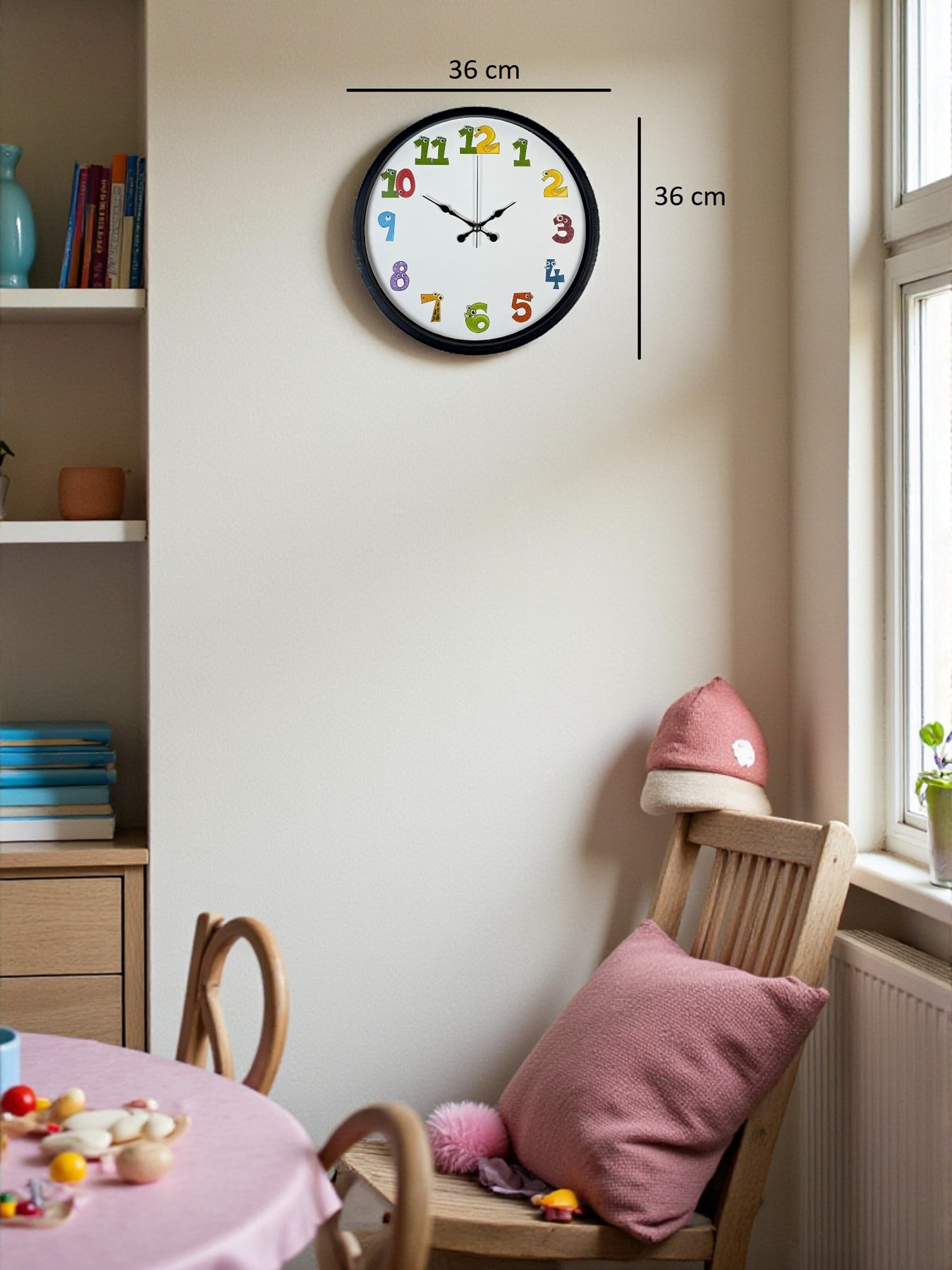 Renkli ve eğlenceli rakam tasarımlarıyla çocuk odalarına neşe katan bu 36 cm duvar saati, sessiz çalışması ve canlı görünümüyle hem dekoratif hem öğretici bir üründür. Çocukların saat öğrenmesini kolaylaştıran sevimli rakam karakterleri ile odalara enerji katar.