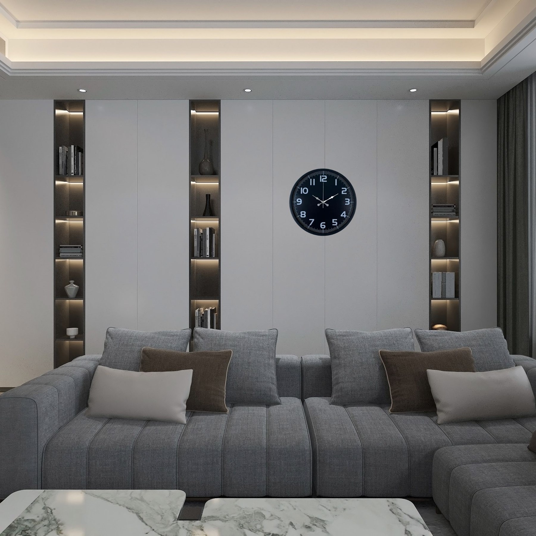 Gold renkli zarif akrep ve yelkovanlar, kadranla güçlü bir kontrast oluşturarak saatin kolay okunmasını sağlar. Sessiz ve akıcı mekanizması sayesinde tik-tak sesi oluşturmaz; salon, ofis, yatak odası ve çalışma alanları için idealdir.