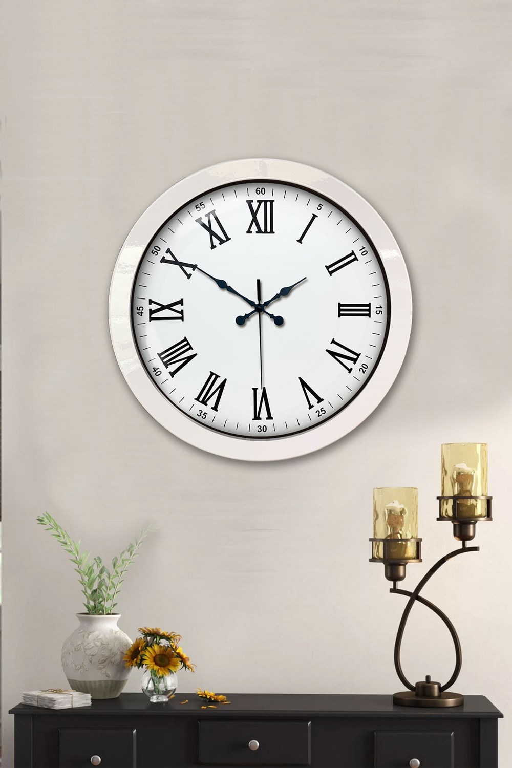 36 cm çapı ile duvarda ideal bir duruş sergileyen bu krem duvar saati; dekoratif görünümü, kaliteli yapısı ve sessiz çalışmasıyla yaşam alanlarının vazgeçilmez bir tamamlayıcısıdır.
