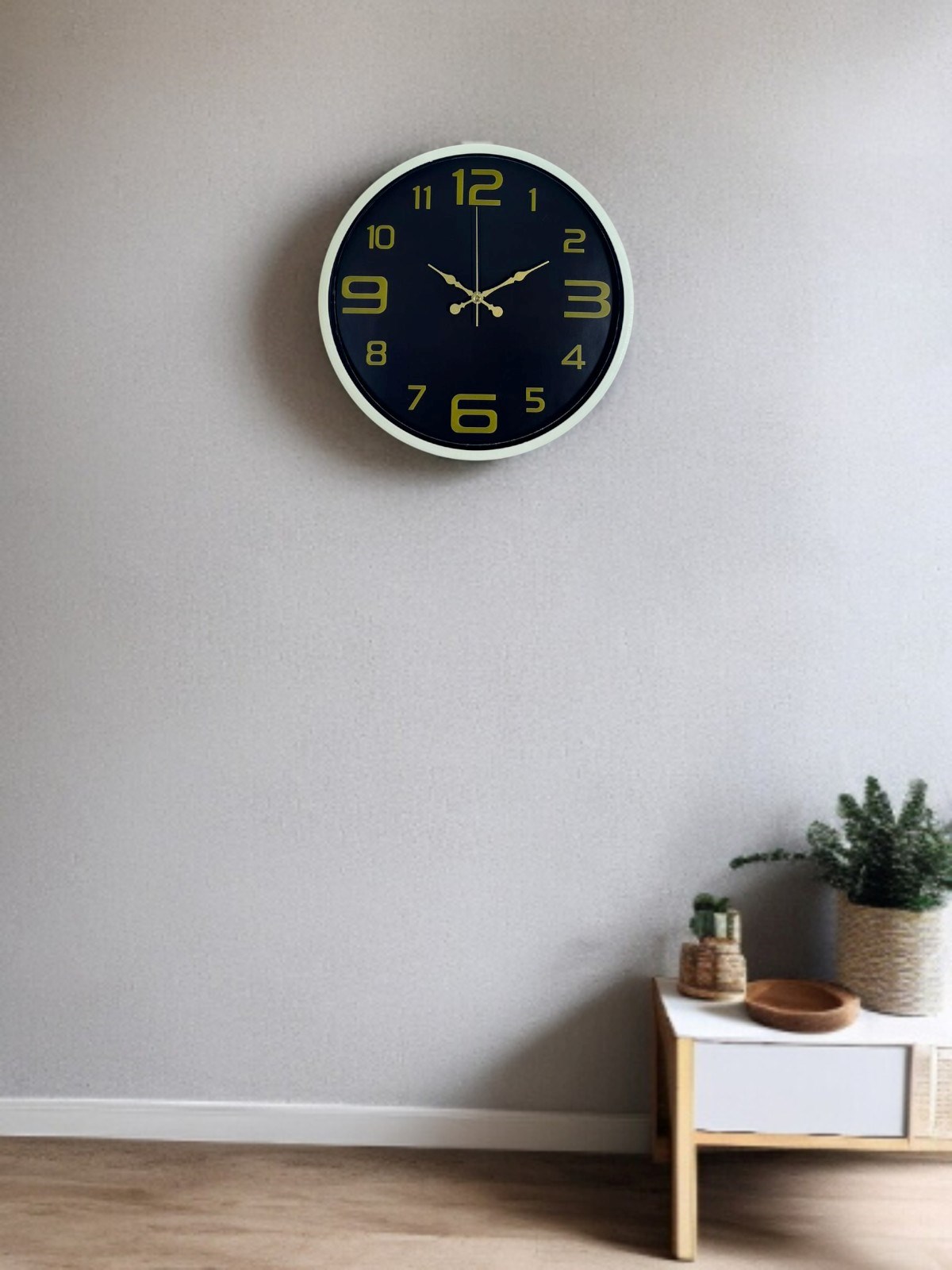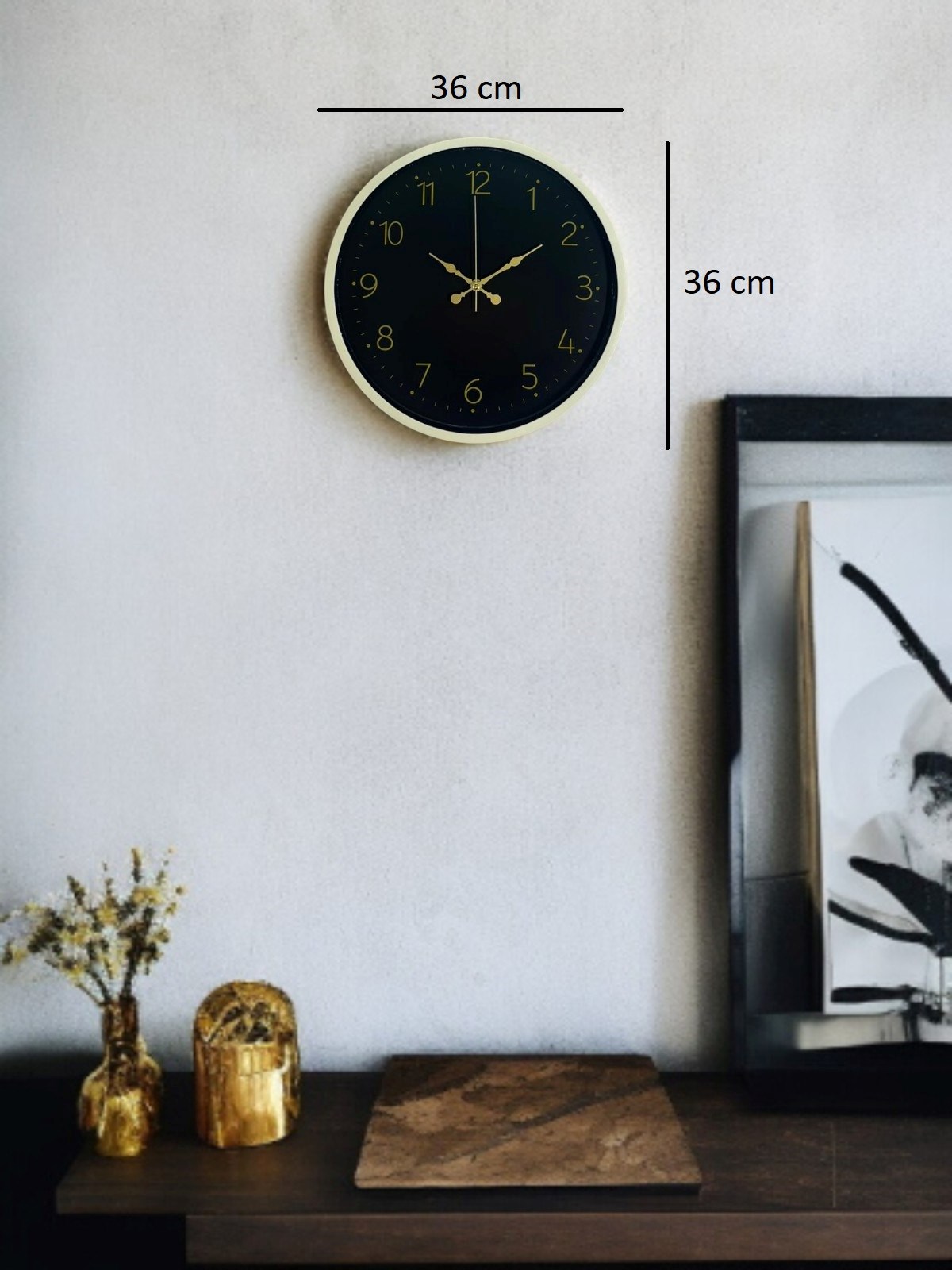 Krem renkli çerçevesi ile koyu zemin üzerindeki gold tonlu rakamları ve zarif akrep-yelkovan tasarımı sayesinde bu 36 cm duvar saati, bulunduğu ortama klasik ve sofistike bir hava katar. Net ve dengeli kadran yapısı, saatin her açıdan rahatlıkla okunmasını sağlar. Hem modern hem de klasik dekorasyon stilleriyle uyumlu, zamansız bir tasarıma sahiptir.
