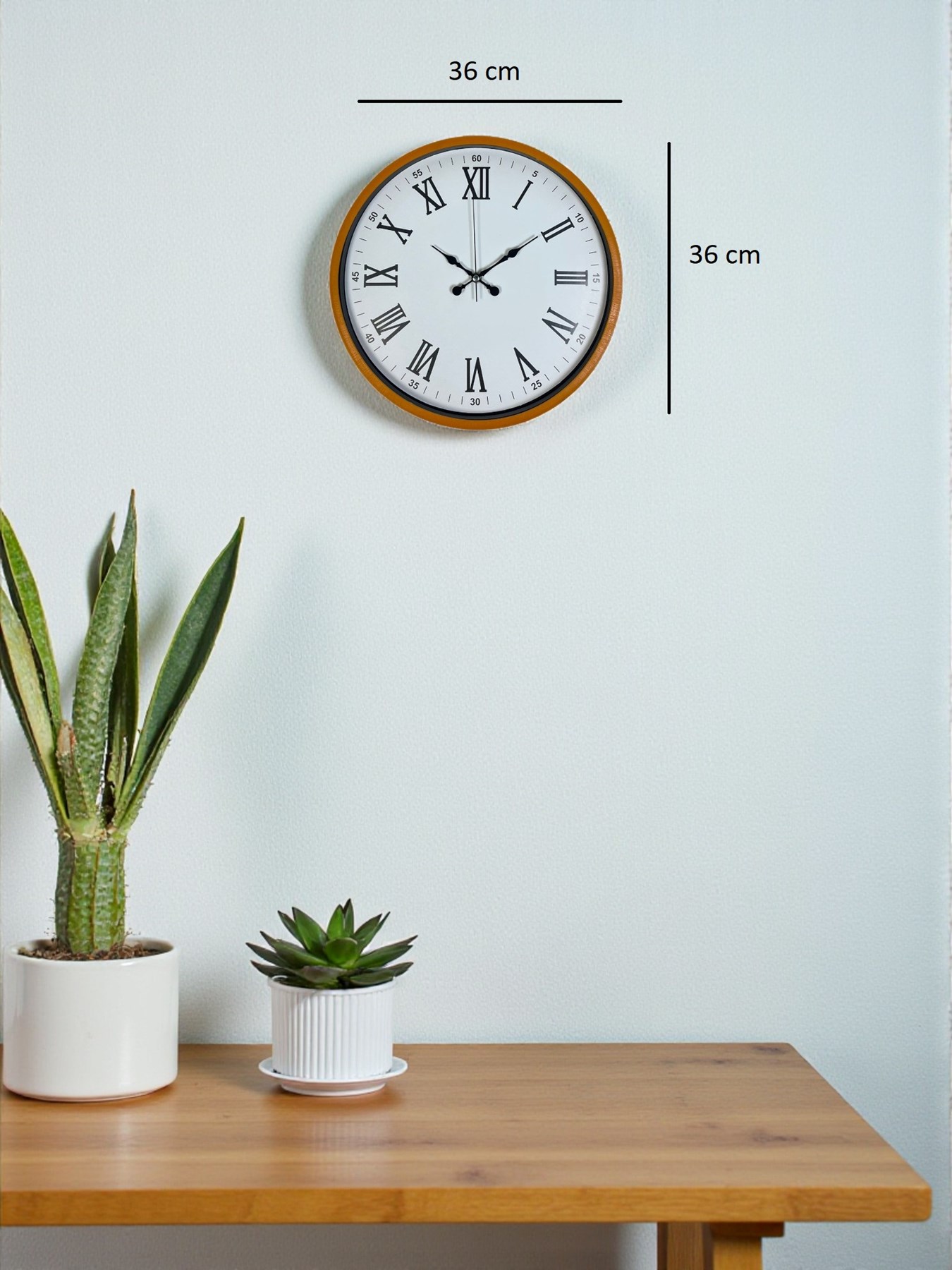 Modern tasarımı ve sade görünümüyle her ortamla uyum sağlayan 36 cm plastik duvar saati, sessiz çalışması ve net okunabilir Roma rakamlı kadranı ile hem şık hem işlevsel bir dekor ürünüdür. Hafif yapısı sayesinde kolayca duvara monte edilir ve uzun ömürlü mekanizmasıyla güvenilir bir kullanım sunar.