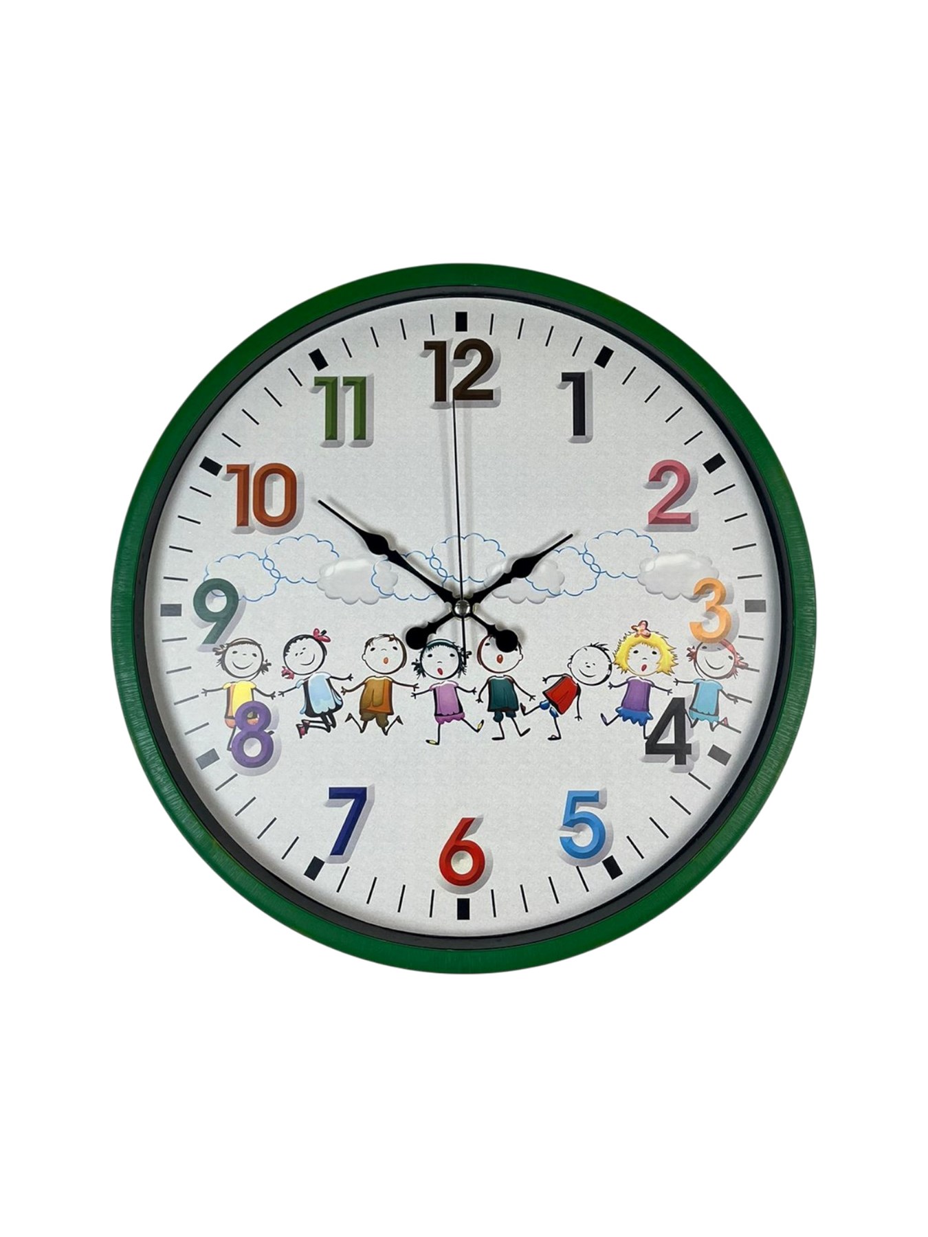 Yeşil çerçevesi, renkli rakamları ve sevimli çocuk figürleriyle tasarlanan bu 36 cm çocuk odası duvar saati; miniklerin ilgisini çeken neşeli tasarımıyla odalara canlılık katar. Renkli ve büyük rakamlar sayesinde çocukların saat öğrenmesini kolaylaştırır, eğlenceli bir öğrenme deneyimi sunar.