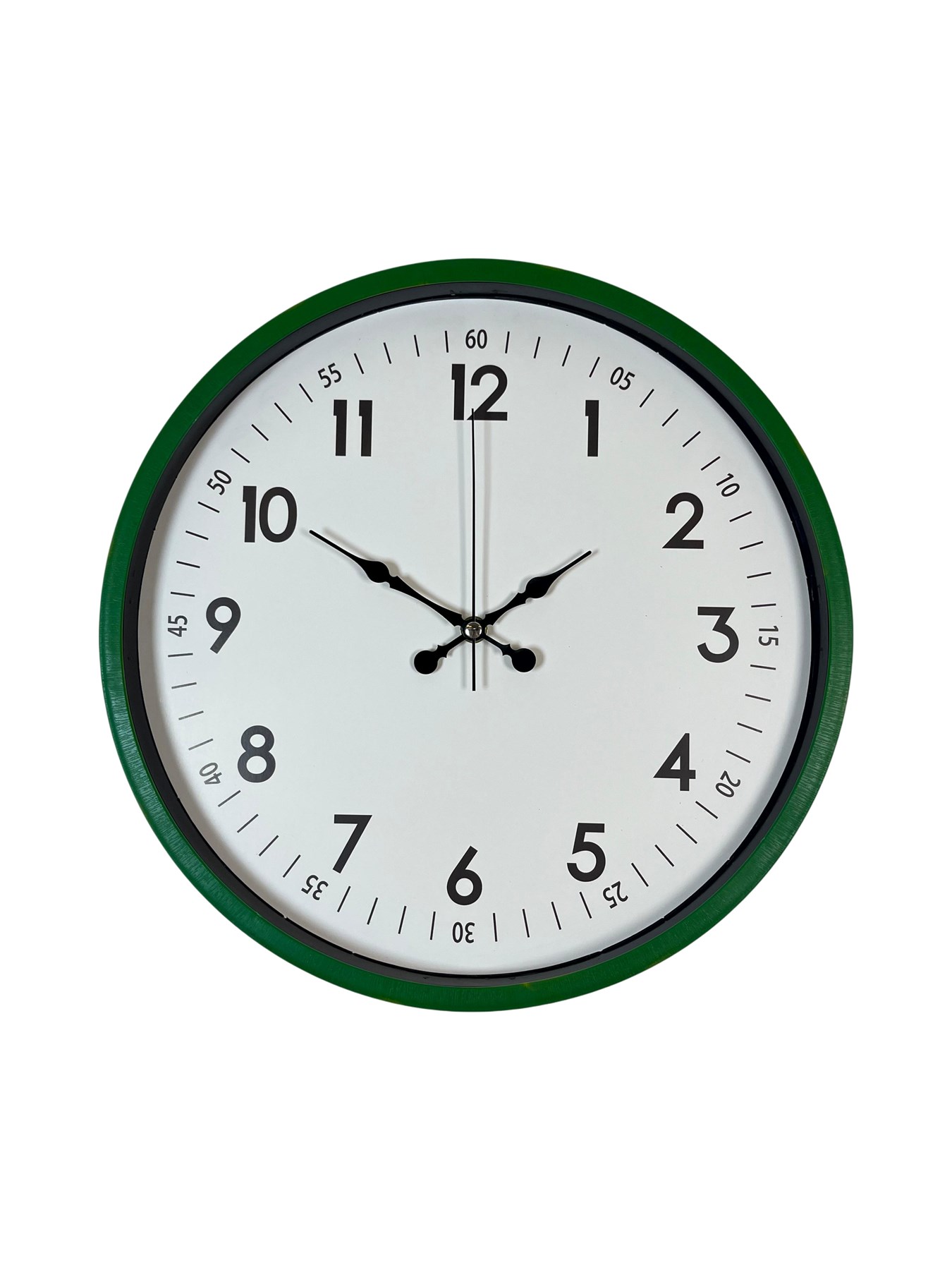 Doğanın ferahlığını ve modern tasarımı bir araya getiren bu 36 cm yeşil duvar saati, yaşam alanlarına taze ve canlı bir dokunuş katmak isteyenler için ideal bir seçimdir. Yeşil çerçevesi sayesinde mekânlara enerji, sıcaklık ve modern bir hava katar. Geniş beyaz kadranı, büyük siyah rakamları ve detaylı dakika göstergeleri (05, 10, 15...) sayesinde saati uzaktan dahi net bir şekilde okumayı kolaylaştırır. Hem dekoratif hem de fonksiyonel bir duvar saati arayanlar için mükemmel bir modeldir.