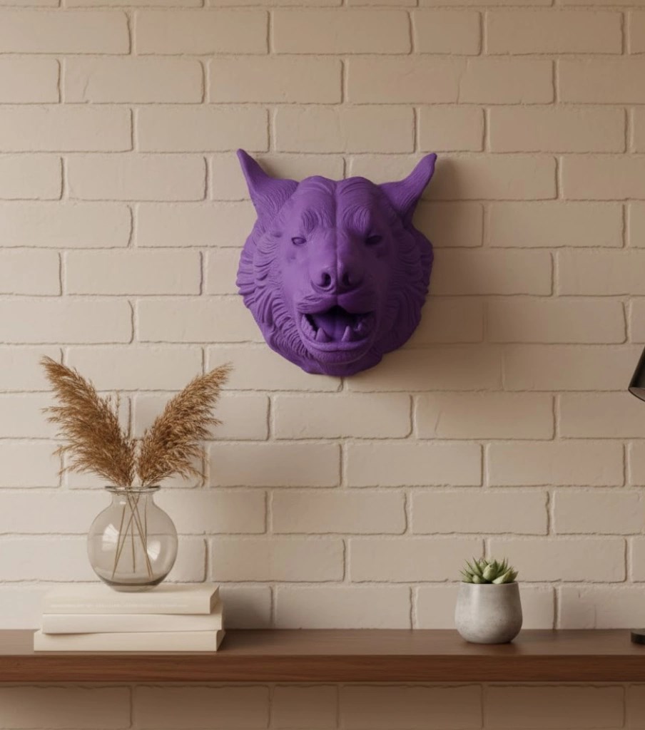 Özel Seri Mor Kurt Duvar Süsü Hediyelik Dekoratif Asılabilir Heykel