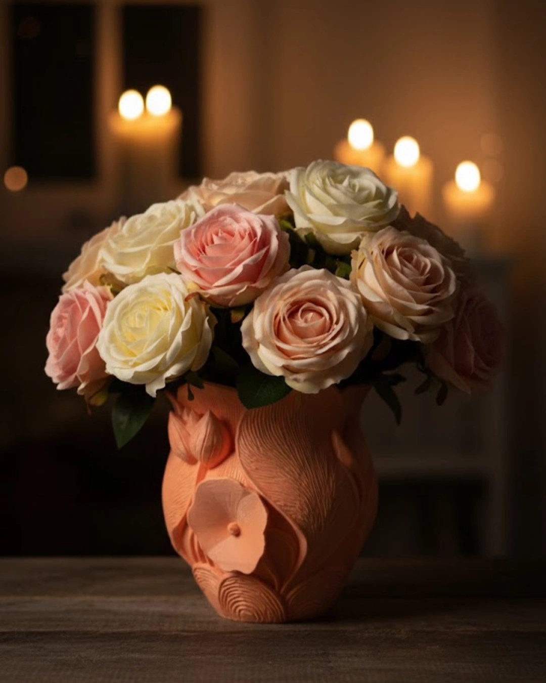 3d Kabartmalı Çiçek Motifli Turuncu Dekoratif Vazo