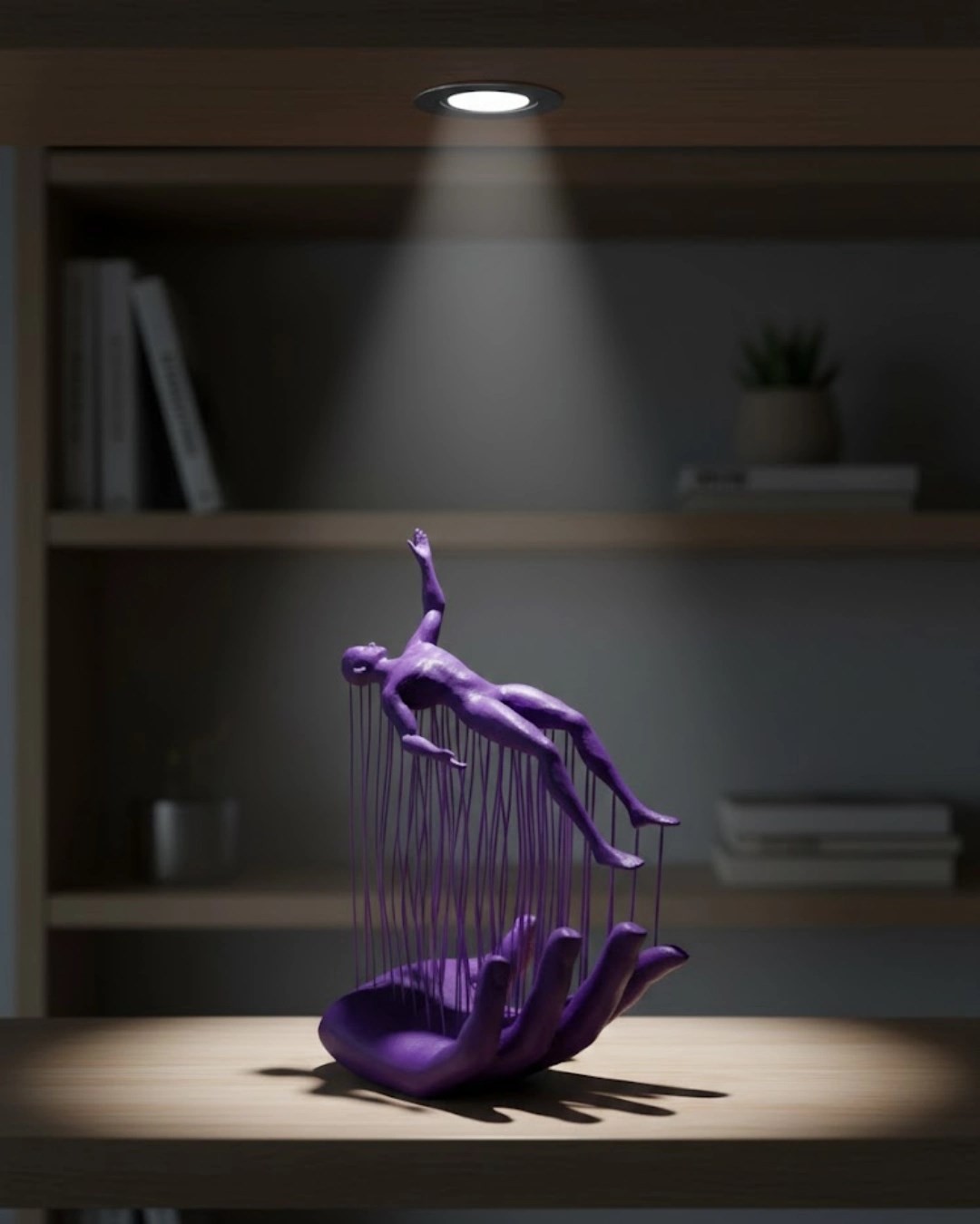 3d El Üzerinde İnsan Figürü Mor Soyut Tasarım Dekor Biblo