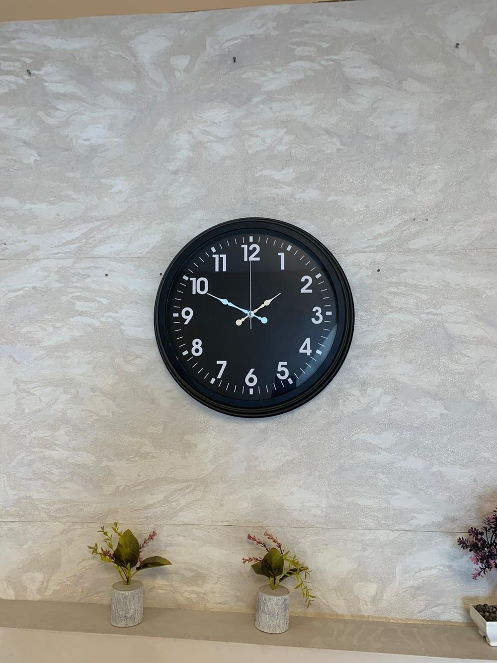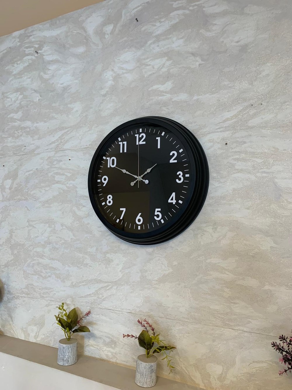 Şık ve modern tasarımıyla dikkat çeken 40 cm siyah fırın boyalı duvar saatimiz, sessiz akar saniye mekanizmasıyla konforlu bir kullanım sunar. Gerçek cam koruma paneli sayesinde uzun ömürlü ve dayanıklıdır. Estetik görünümüyle hem ev hem de iş yerleri için ideal bir dekoratif üründür.