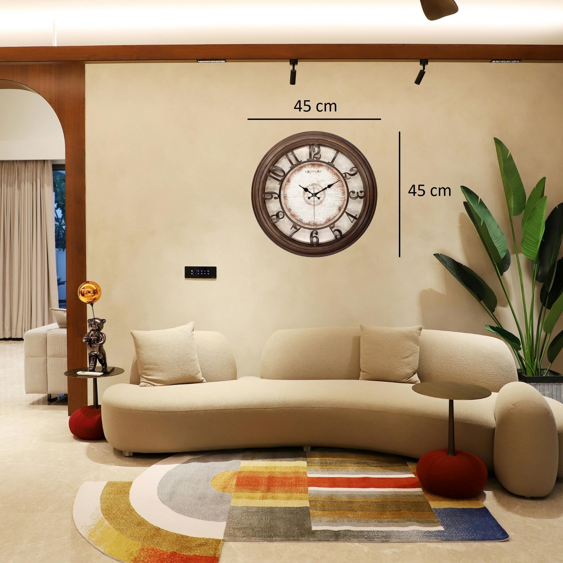Vintage detaylarla tasarlanan özel kadranı ve geniş çapı sayesinde duvarda güçlü bir dekoratif etki oluşturur. Salon, oturma odası, mutfak, ofis, kafe ve restoran gibi alanlarda hem fonksiyonel hem de dekoratif bir kullanım sunar.