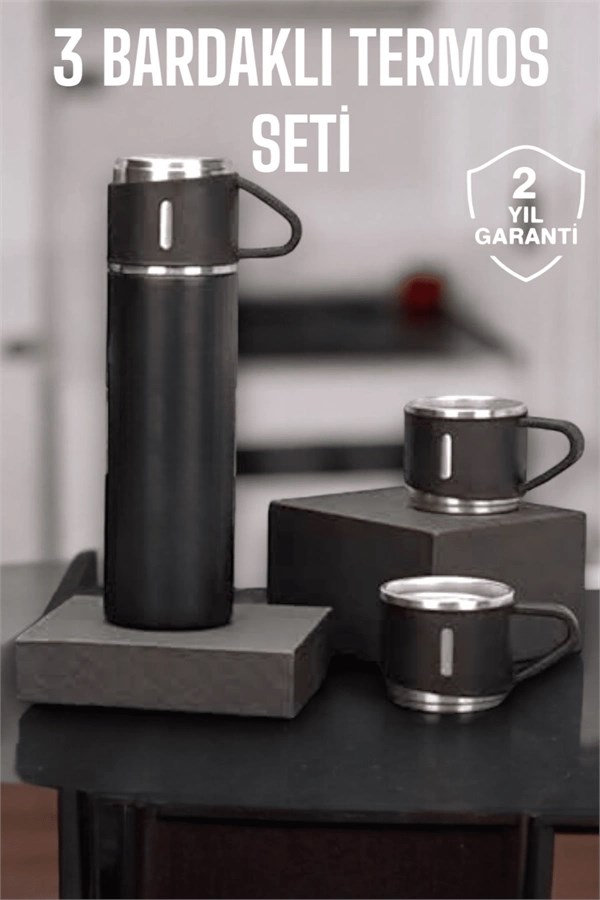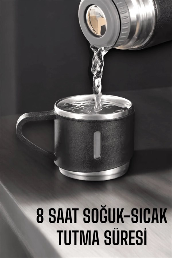 Mat Siyah Isı Muhafazalı Kulplu Ve Kilitli Çelik Termos Kupa Alk4634