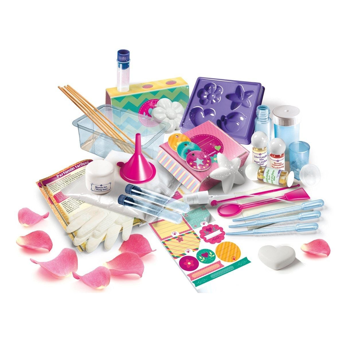 • Muhteşem kokan eserleri hayata geçiren gerçek bir bilim laboratuvar seti ile araç parfümü, oda parfümü, krem parfümü, potpuri, banyo tuzları ve kokulu tebeşirler yapın.
