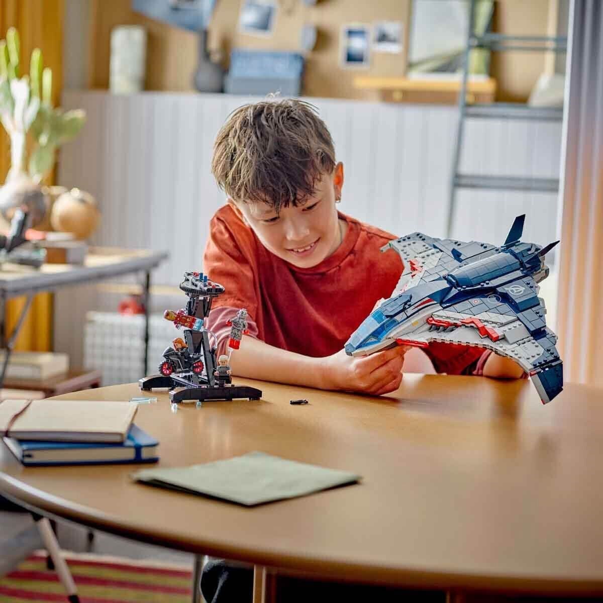 İnşa edilebilen Quinjet modeli 5 minifigür ile birlikte gelir: Motosikleti ile Black Widow; Iron Man; Quicksilver; Ultimate Ultron, yayı ve oku ile de Hawkeye… Minifigürler uçakta birden fazla yere takılabilir. Quinjet'in açılan kokpiti, önde 2 mermi atıcısı ve Black Widow'un silahları ve Hawkeye'ın yayı için saklama alanı bulunur. Açılan arka kapıdan çocuklar motosikleti içeri ve dışarı sürebilir. İkonik uçağı 360 derece sergilemek için çıkarılabilir, döndürülebilir bir stant dahildir. Daha fazla dijital eğlence için model severler eğlenceli, kullanımı kolay LEGO Builder uygulamasını kullanarak modelleri yakınlaştırabilir, 3 boyutlu olarak döndürebilir ve ilerlemelerini takip edebilir. Set, 1.131 parça içermektedir.