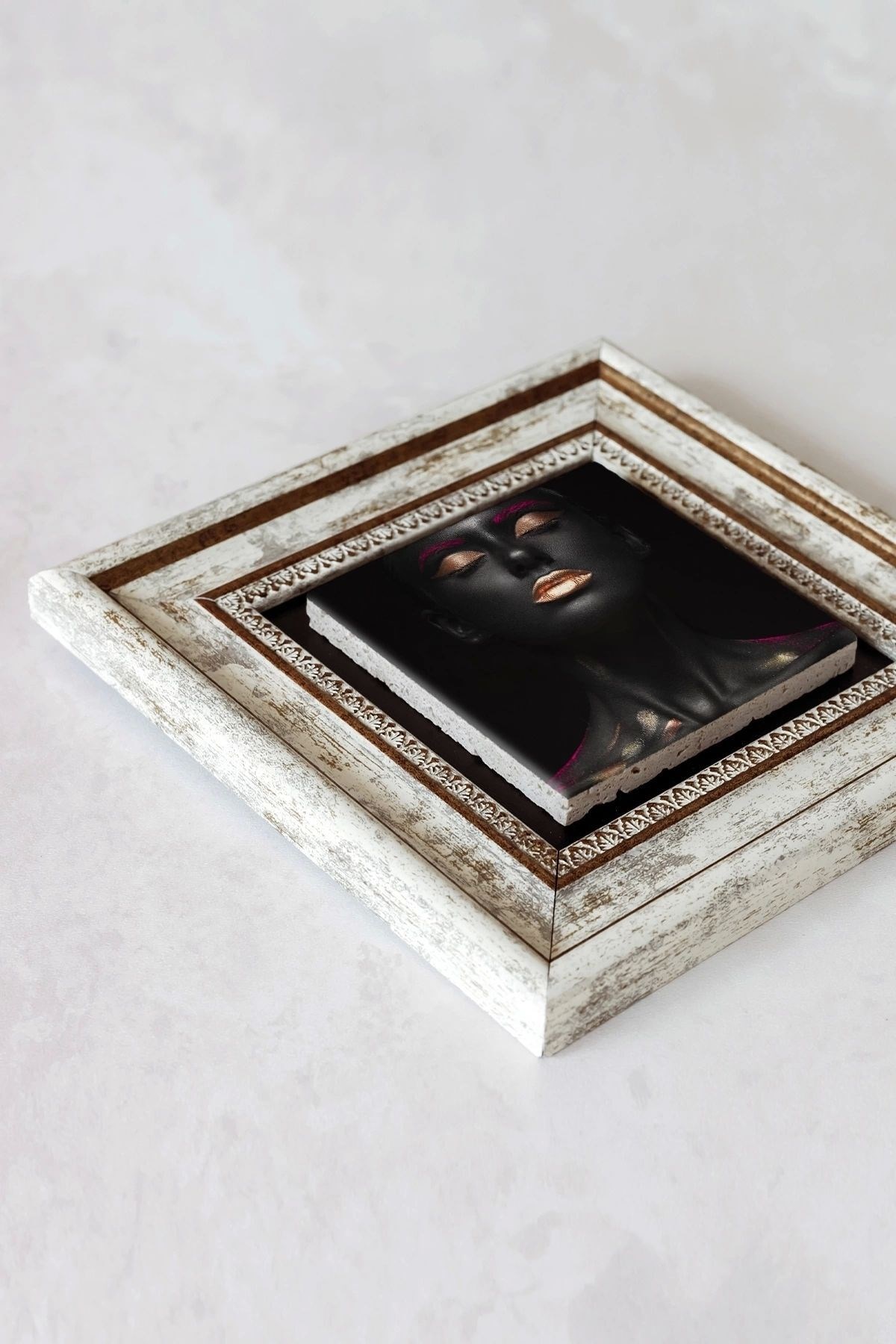 Ürün hakkında: Ölçüleri: 20 cm x 20 cm'dir. ; Kalınlık :2,5 cm'dir. ; Ürünün arka tarafında askı aparatı bulunmaktadır. ; Kullanılan çerçeveler yüksek kaliteli, eskitme görünümlü kompozit malzemeden üretilmiştir. ; Taşların yüzeyindeki baskı teknolojisi özel olup sağlığa hiçbir zararı yoktur. ; Kullanılan malzeme dağdan çıkan gerçek taş oldugu için yüzeyinde belli oranda gözenek bulunması ve renginin krem renginin tonlarını barındırması normaldir kimyasal malzeme teması Yüzey deformasyona maruz kalabilir. ; Nemli bezle silinerek temizlenebilir. ; Isıya, suya ve neme dayanıklıdır. ; Kutu içeriği: Orijinal kutu içerisinde 1 adet çerçeveli taş duvar dekoru. ; 1 adet çerçeveli duvar dekoru ağırlığı: 250 gr çerçeve askısı ile duvara montajı yapılabilir.;