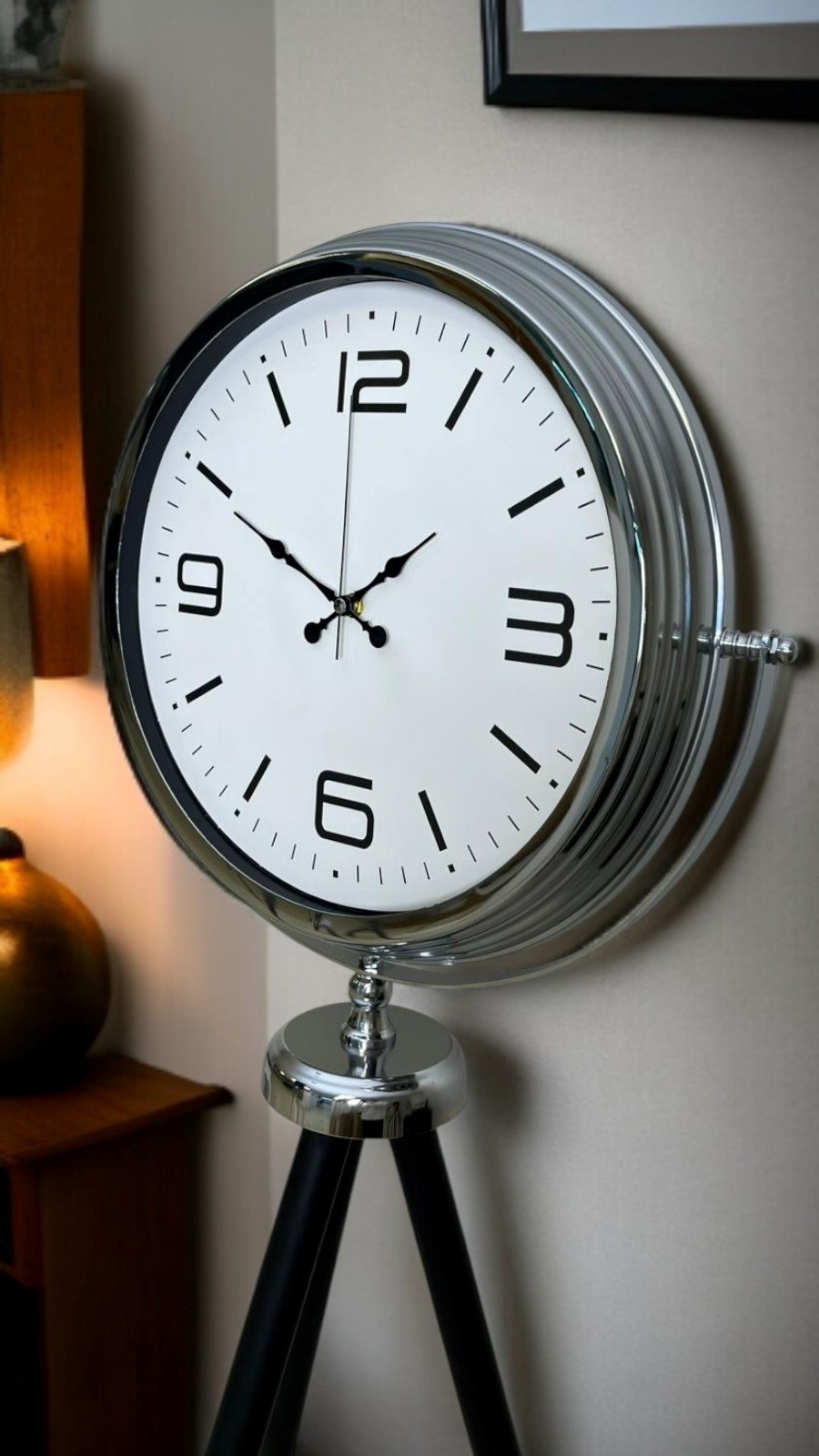 Krom Sade & Şık Tripod Ayaklı Saat