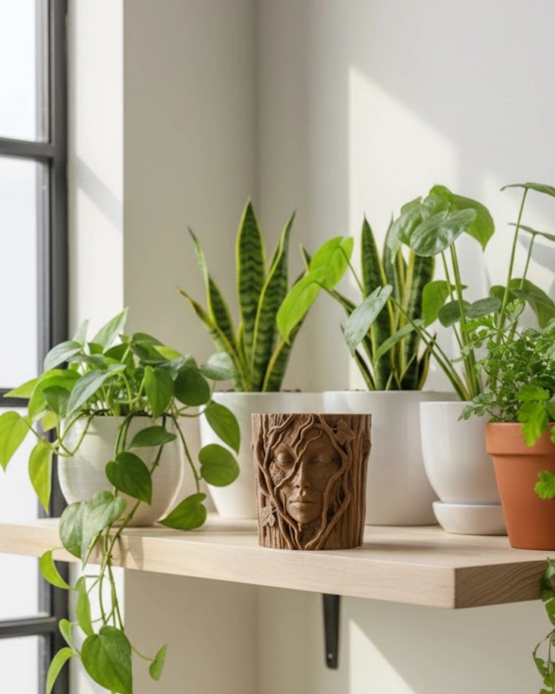 3d Ağaç Gövdesi Formlu Yüz Figürlü Dekoratif Saksı Sanatsal Tasarım Vazo