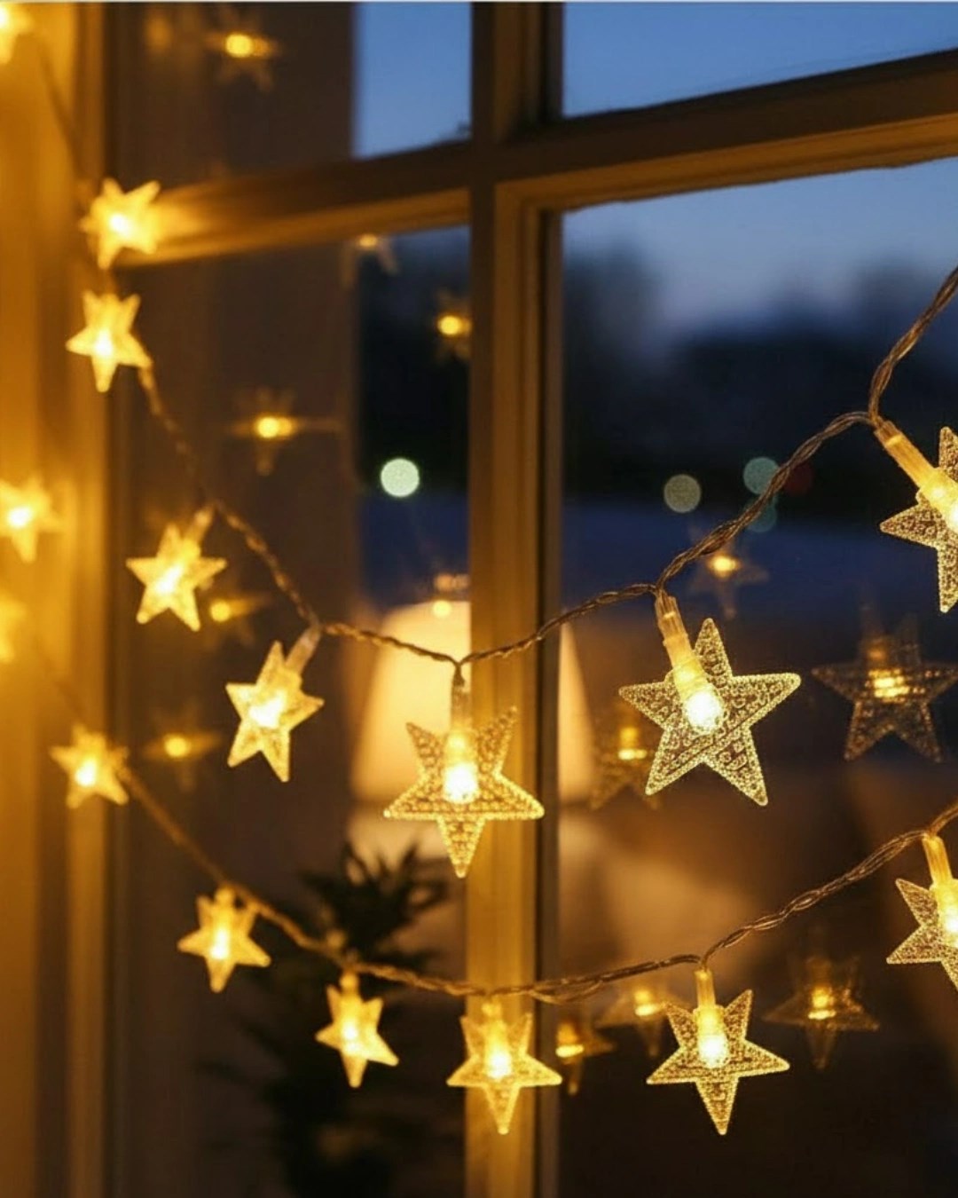 Günışığı Beyaz Yıldız Işık Zinciri 5 Metre Enerji Tasarruflu Dekor