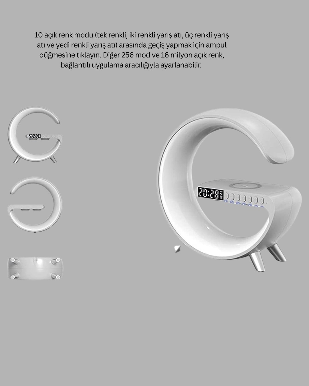 Kablosuz Şarjlı Atmosfer Lambası Bluetooth Hoparlör Ve Akıllı Alarm Özellikli