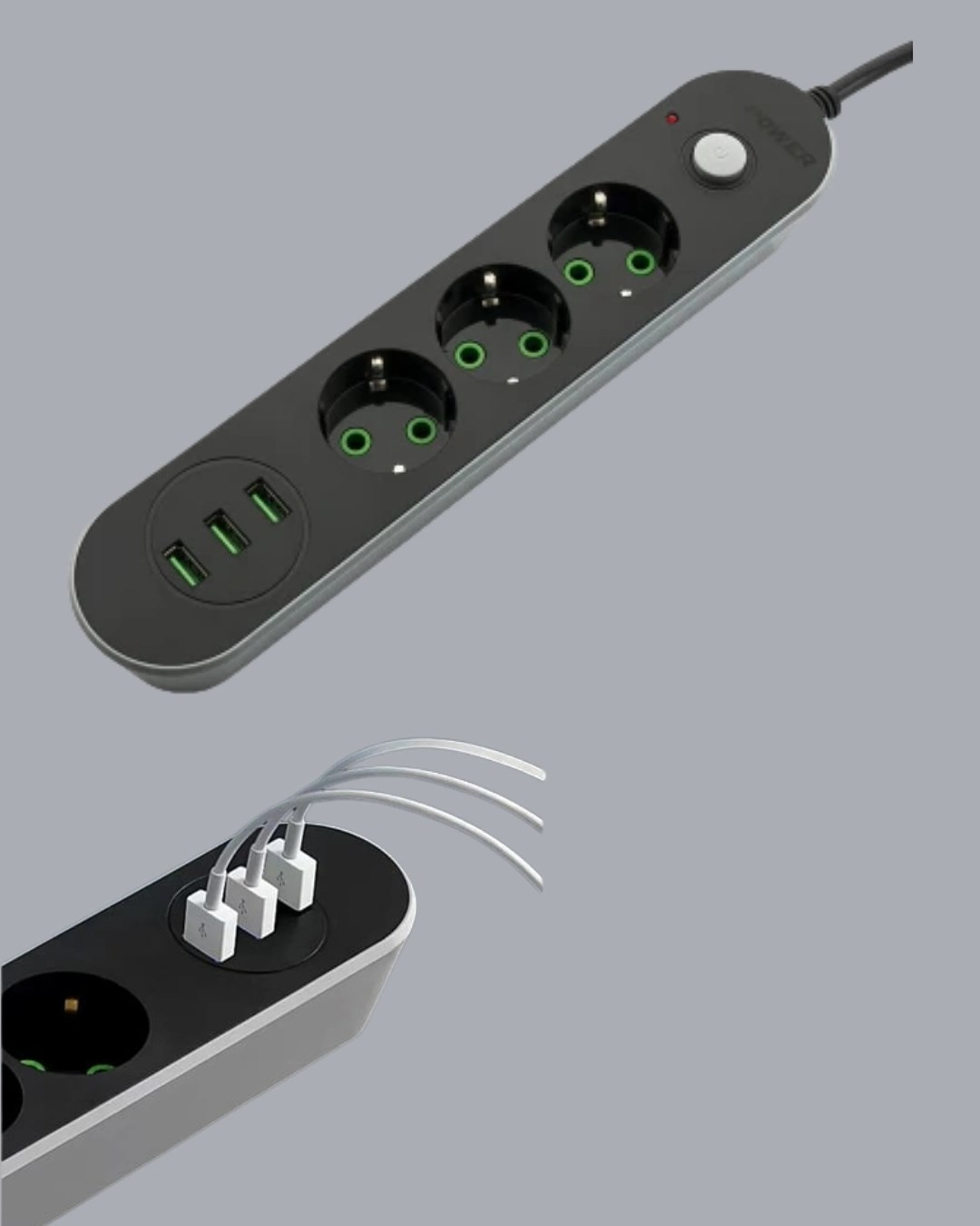 Güçlü Termal Korumalı 8 Priz + 3 Usb Çoklu Uzatma Kablosu 2m