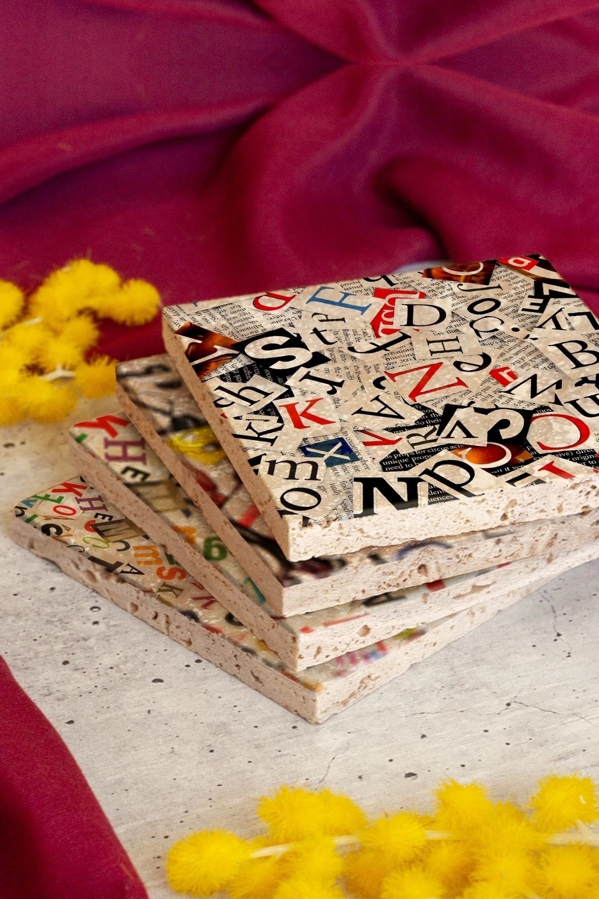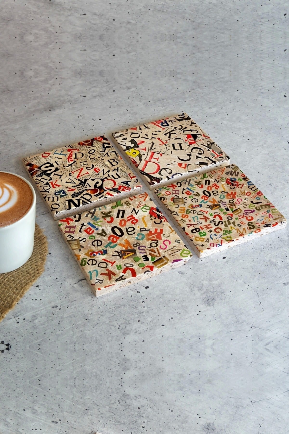 4'lü set olarak gönderilir. Her bir taş 10cm x10 cm ebatındadır.; Taş Bardak Altlıklarının her birinin arkasında koruyucu bulunmaktadır. Çizilmelere karşı korunaklıdır.; Kullanılan malzeme dağlardan çıkan gerçek taş olduğu için taşın yüzeyinde belli oranda gözenek bulunabilir ve girinti-çıkıntı olabilir.; Taşın doğal halinde krem rengi tonların bulunmasından dolayı ürün görselinde renk tonu farklılıkları olabilir.; Taşların yüzeyinde özel bir baskı yöntemi kullanılmaktadır.; Kimyasal malzeme teması yüzeyde deformasyona neden olabilir. Bu nedenle ürünler nemli bezle silinerek temizlenmelidir.; Bardak Altlıklarımızın üretimi kendi atölyemizde tarafımızca gerçekleştirilmektedir.; Özenle ambalajlanan ürünlerimiz, sorunsuz biçimde size ulaştırılmak üzere kargolanması yapılır.;