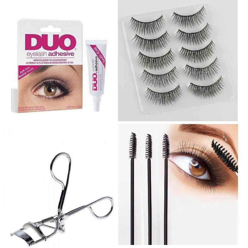 4 Parça Kirpik Seti Takma Kirpik Takımı 5li Kirpik Set Kirpik Kıvırıcı Kirpik Yapıştırıcı Rimel Maskara Fırçası