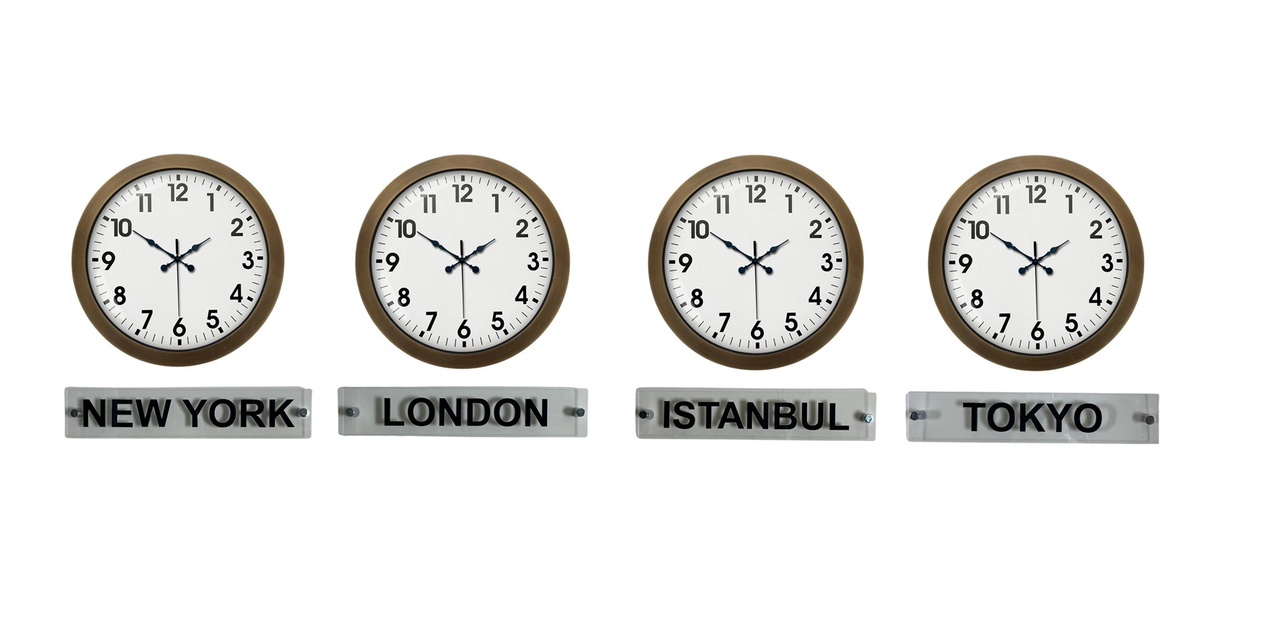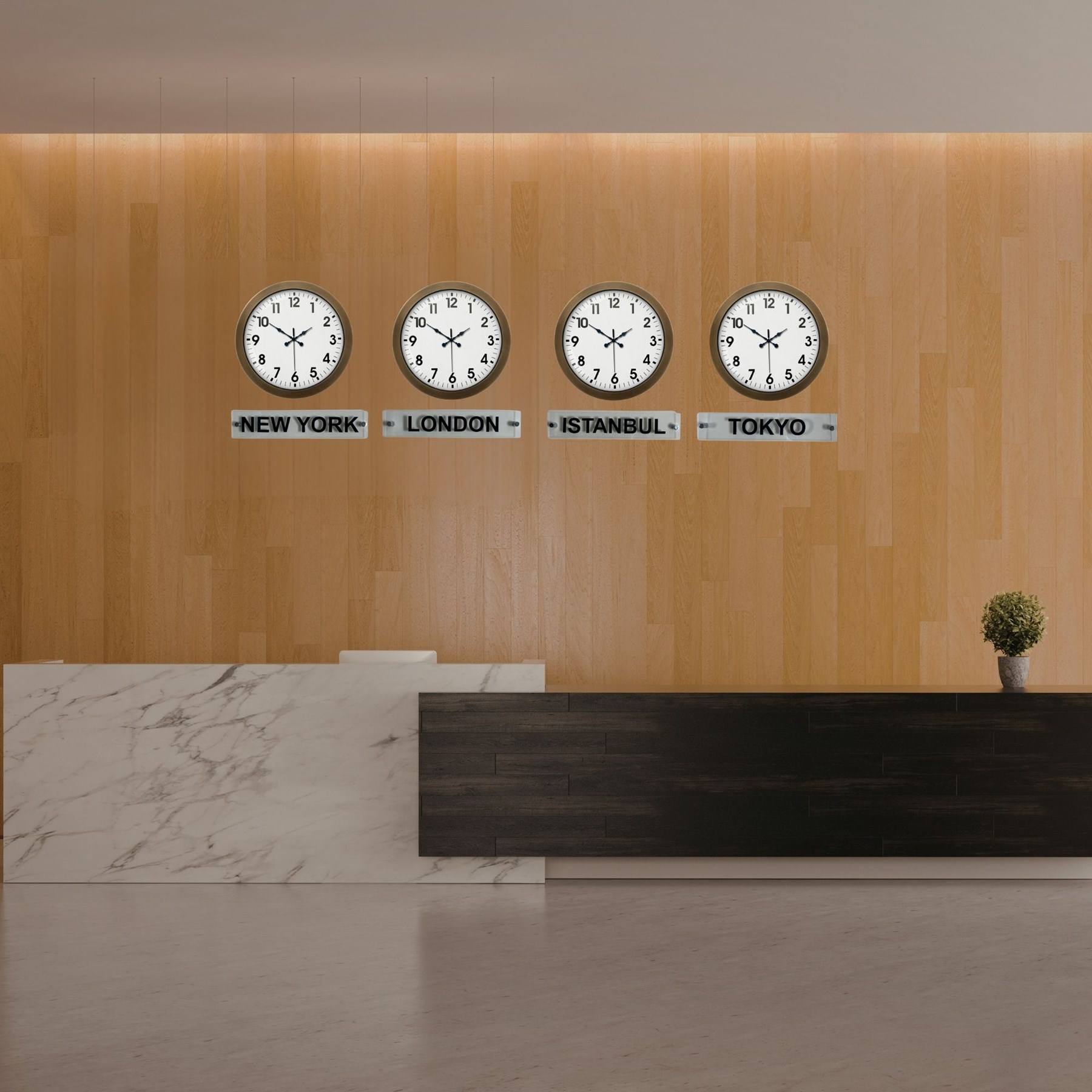 New York, London, İstanbul ve Tokyo şehirlerini aynı anda takip etmenizi sağlayan bu set; özellikle ofis, otel, kafe ve konsept mekânlar için hem dekoratif hem de işlevsel bir çözümdür.