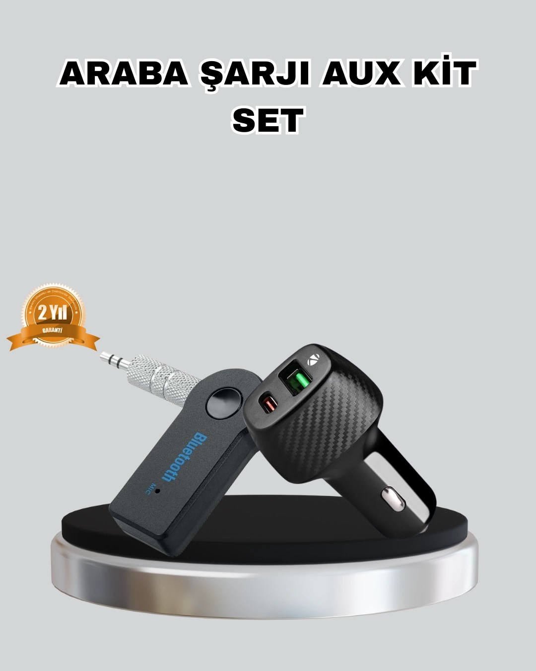 Aux Bluetooth Adaptör Ve 38w Hızlı Araç Şarj Cihazı Seti